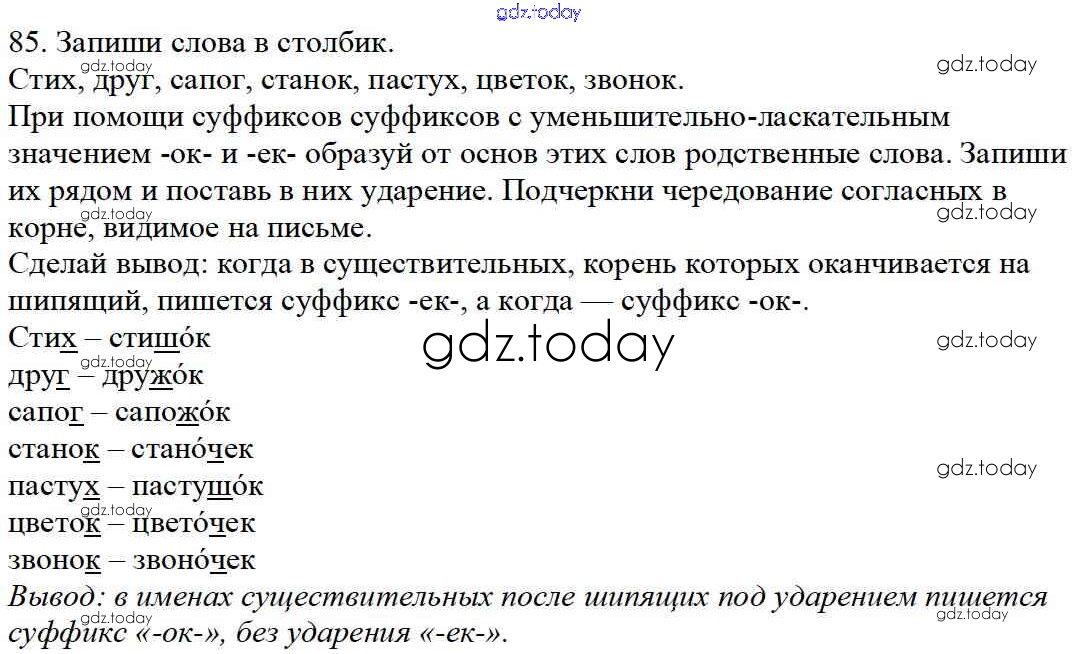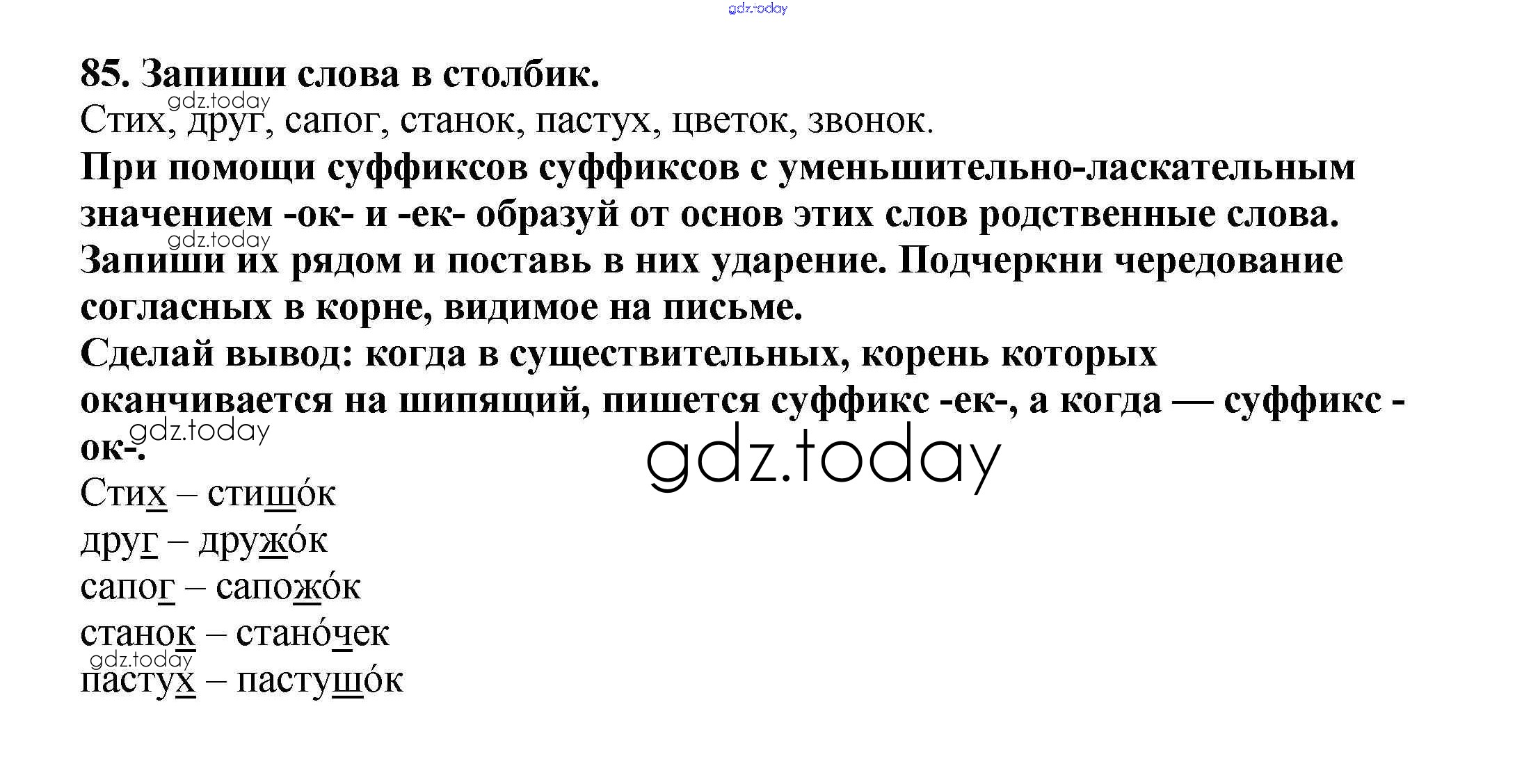 На страницах сайта gdz.today вы найдете учебный и вспомогательный материал, направленный на улучшения знаний школьной программы. ГДЗ - онлайн мир знаний Часть 3. Решение к упражнениям 85 Учебнику по Русскому языку для 4 класса Каленчук, Чуракова Академкнига Перспективная начальная школа 2016