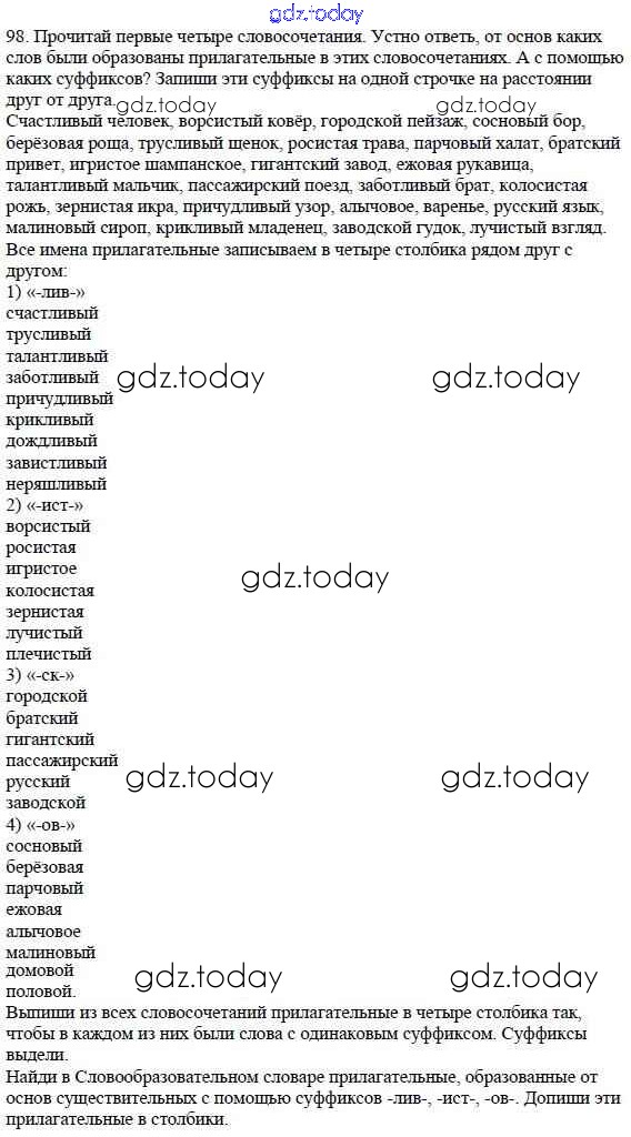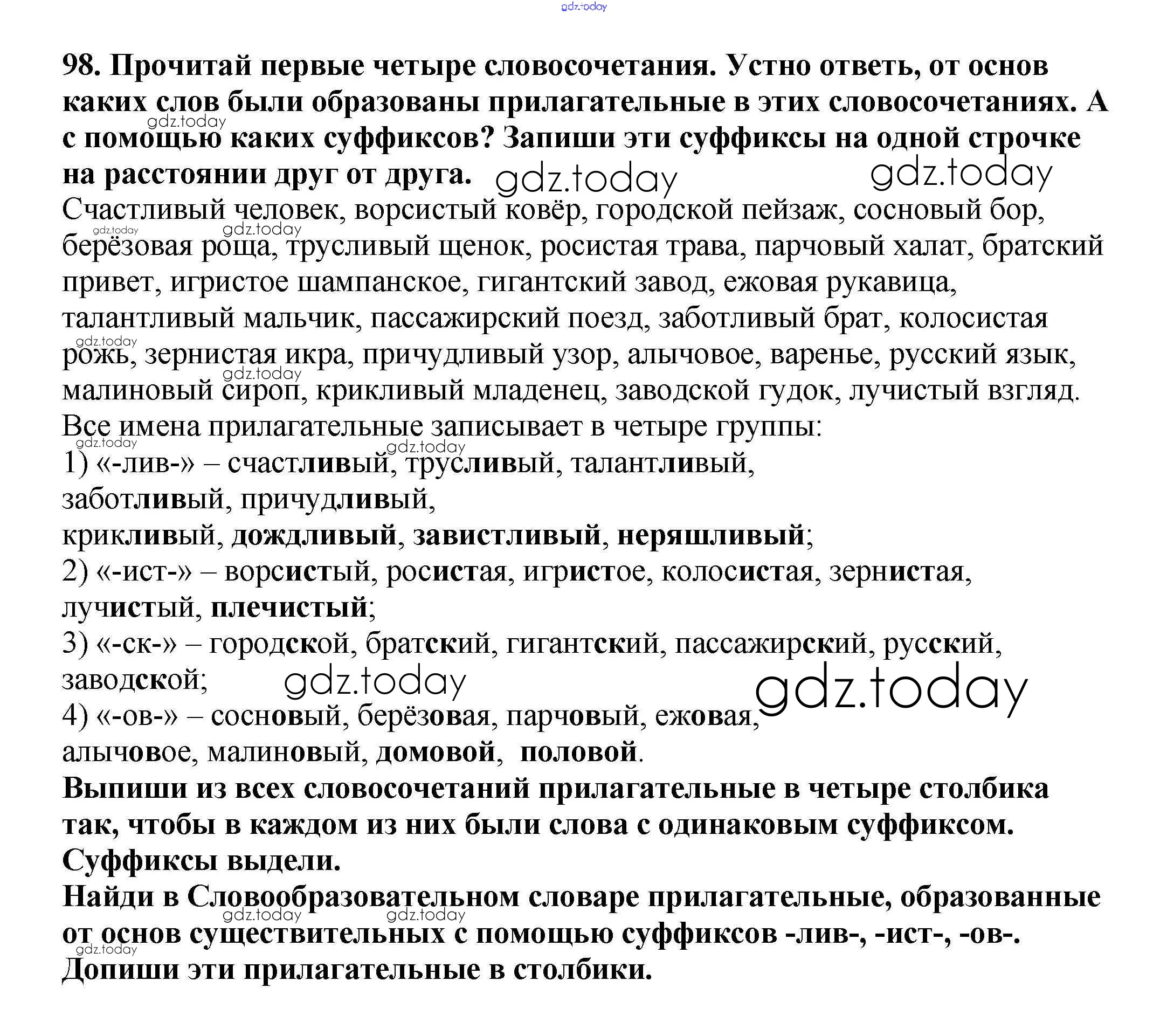 На страницах сайта gdz.today вы найдете учебный и вспомогательный материал, направленный на улучшения знаний школьной программы. ГДЗ - онлайн мир знаний Часть 3. Решение к упражнениям 98 Учебнику по Русскому языку для 4 класса Каленчук, Чуракова Академкнига Перспективная начальная школа 2016