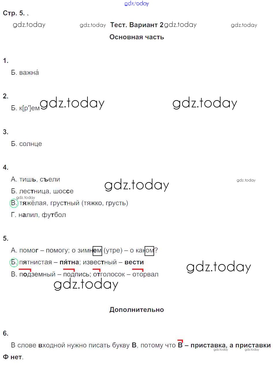 Ответы к Страницы (решение) 5 Тестам и самостоятельным работам для текущего контроля по Русскому языку для 4 класса Калинина, Желтовская Дрофа Планета знаний 2017