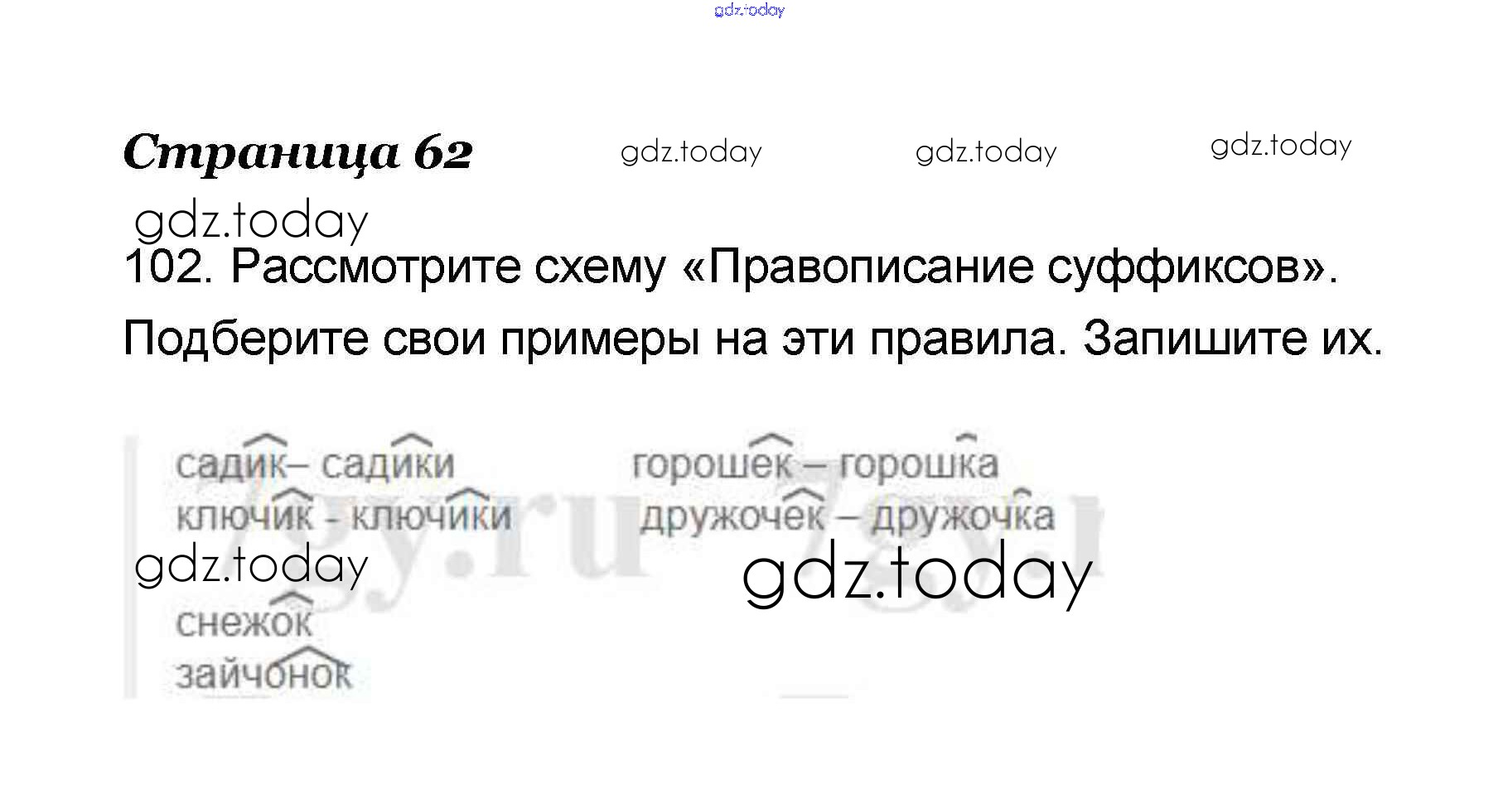 На страницах сайта gdz.today вы найдете учебный и вспомогательный материал, направленный на улучшения знаний школьной программы. ГДЗ - онлайн мир знаний Решение к части 1 102 Учебнику по Русскому языку для 4 класса Канакина, Горецкий Просвещение Школа России 2015
