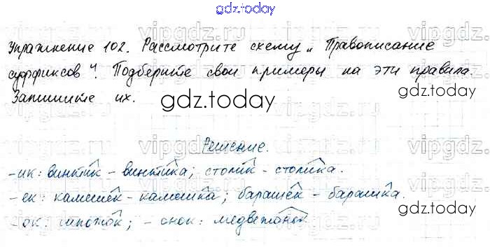 Ответы к Решение к части 1 102 Учебнику по Русскому языку для 4 класса Канакина, Горецкий Просвещение Школа России 2015