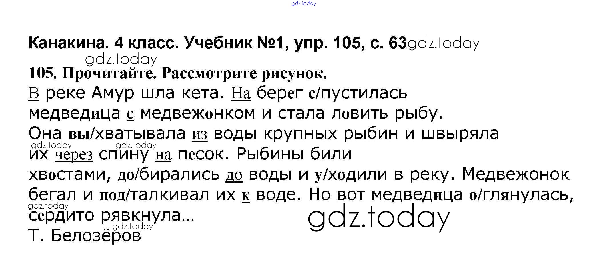 На страницах сайта gdz.today вы найдете учебный и вспомогательный материал, направленный на улучшения знаний школьной программы. ГДЗ - онлайн мир знаний Решение к части 1 105 Учебнику по Русскому языку для 4 класса Канакина, Горецкий Просвещение Школа России 2015