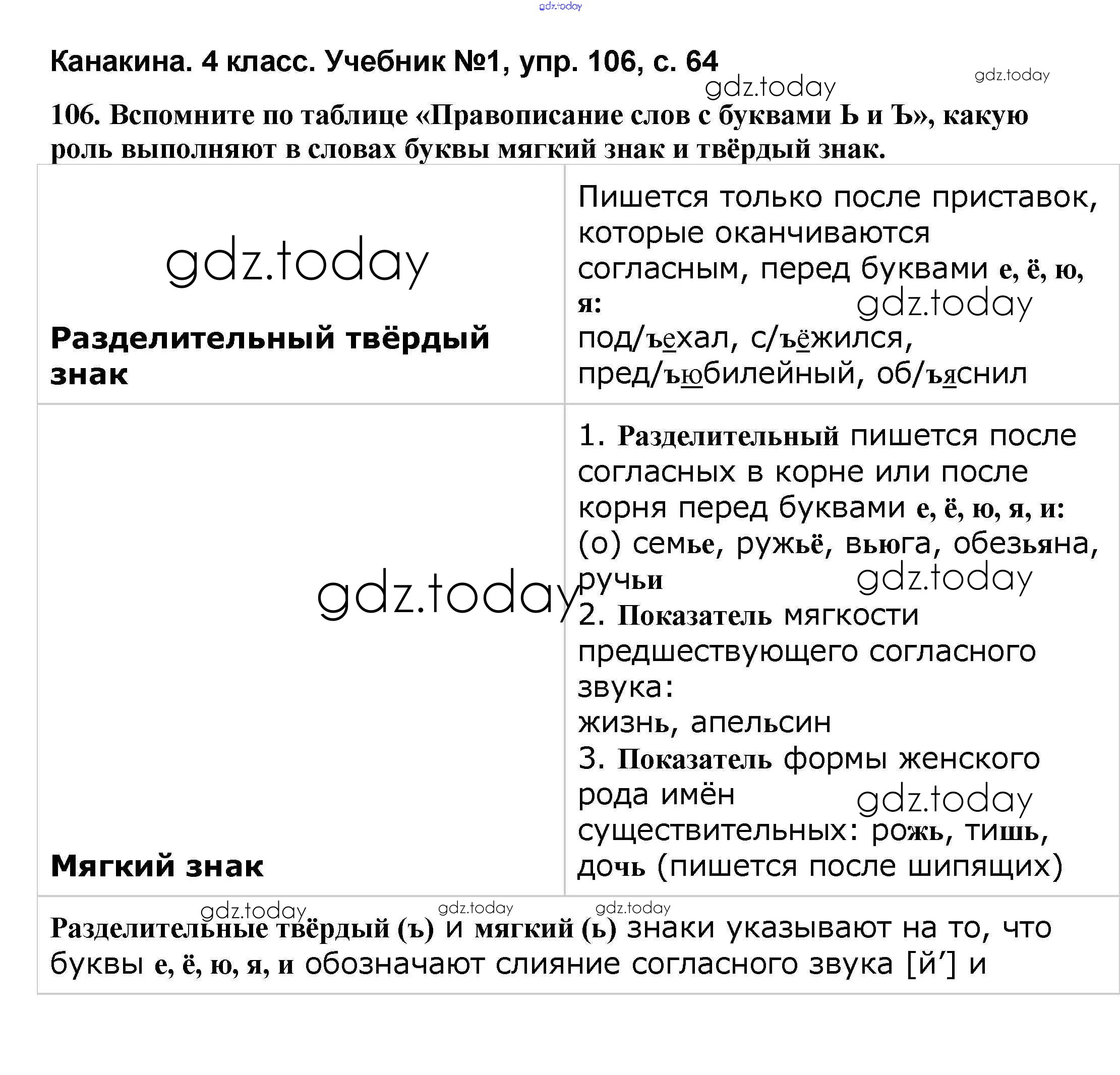 На страницах сайта gdz.today вы найдете учебный и вспомогательный материал, направленный на улучшения знаний школьной программы. ГДЗ - онлайн мир знаний Решение к части 1 106 Учебнику по Русскому языку для 4 класса Канакина, Горецкий Просвещение Школа России 2015