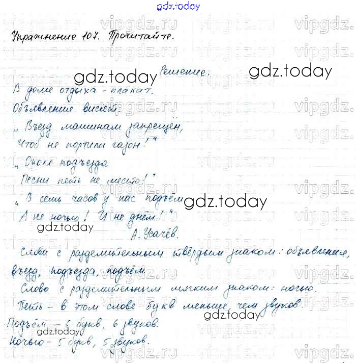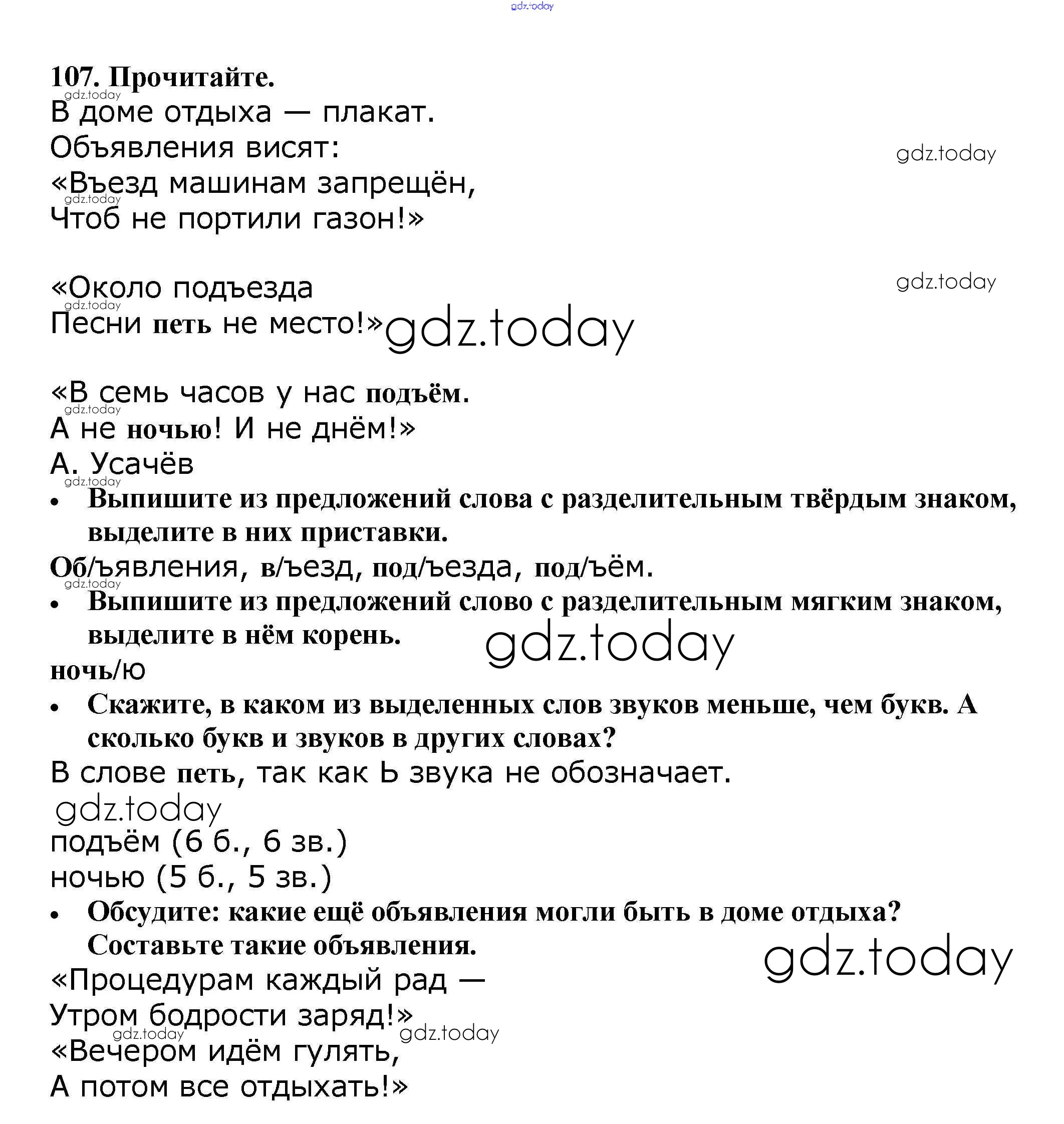 На страницах сайта gdz.today вы найдете учебный и вспомогательный материал, направленный на улучшения знаний школьной программы. ГДЗ - онлайн мир знаний Решение к части 1 107 Учебнику по Русскому языку для 4 класса Канакина, Горецкий Просвещение Школа России 2015