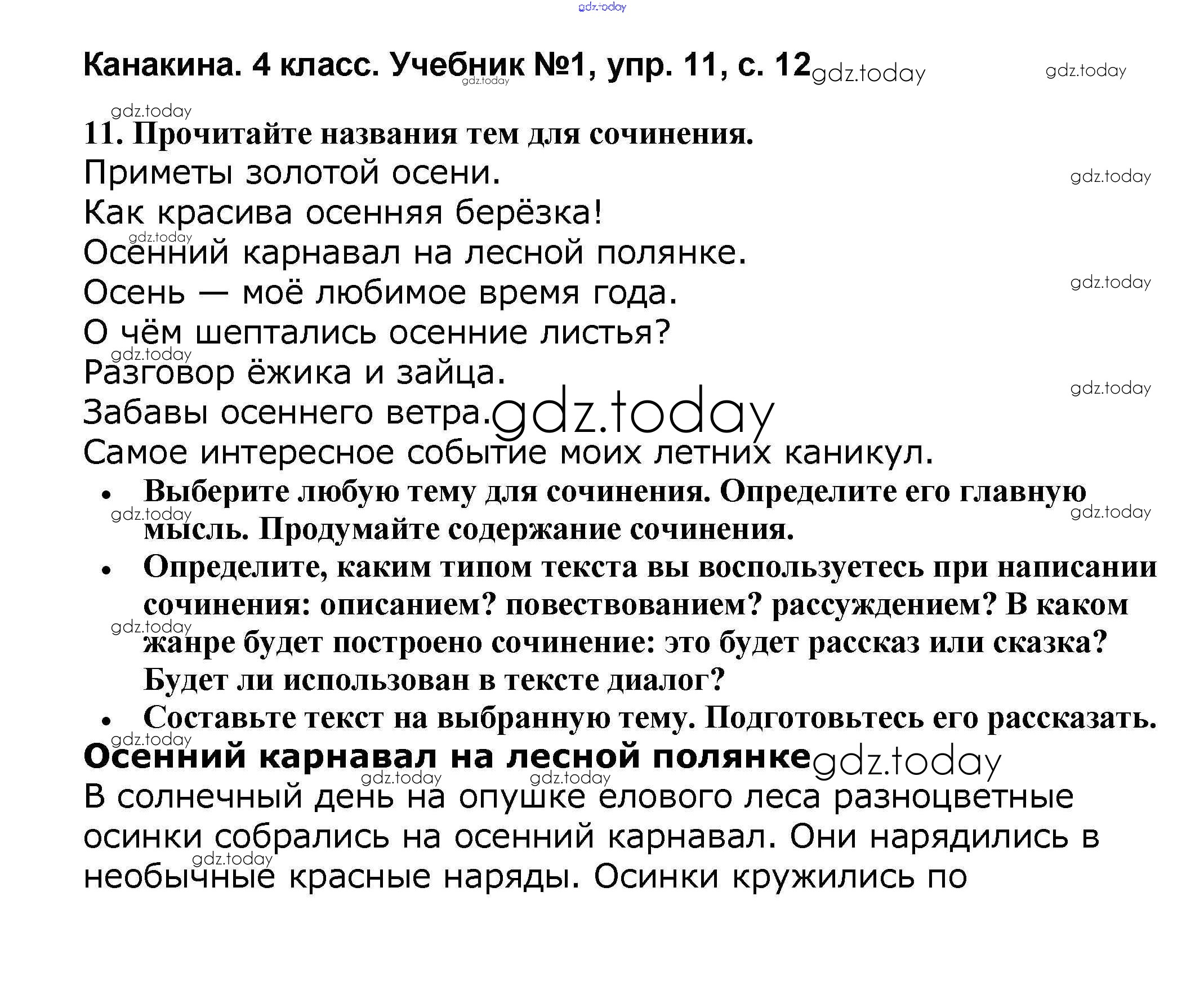 На страницах сайта gdz.today вы найдете учебный и вспомогательный материал, направленный на улучшения знаний школьной программы. ГДЗ - онлайн мир знаний Решение к части 1 11 Учебнику по Русскому языку для 4 класса Канакина, Горецкий Просвещение Школа России 2015