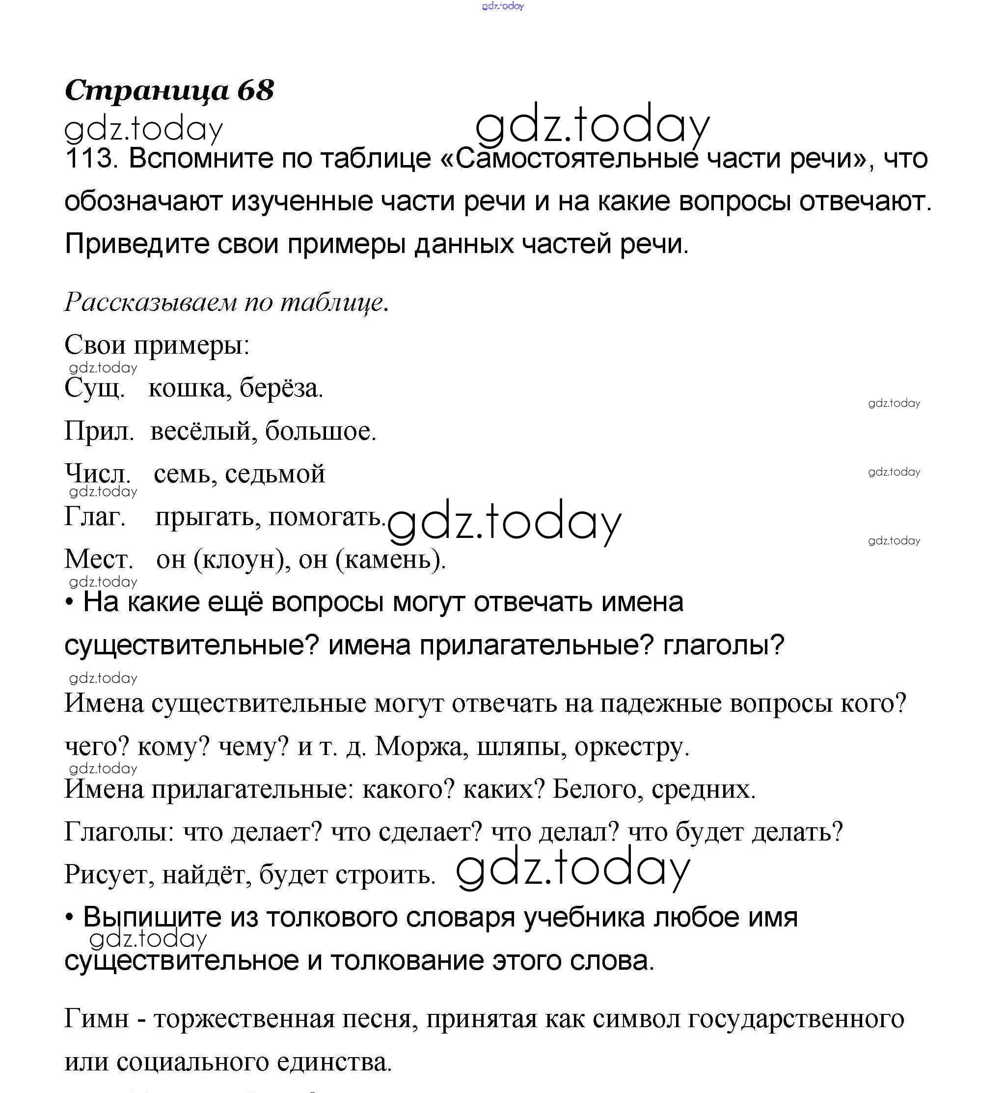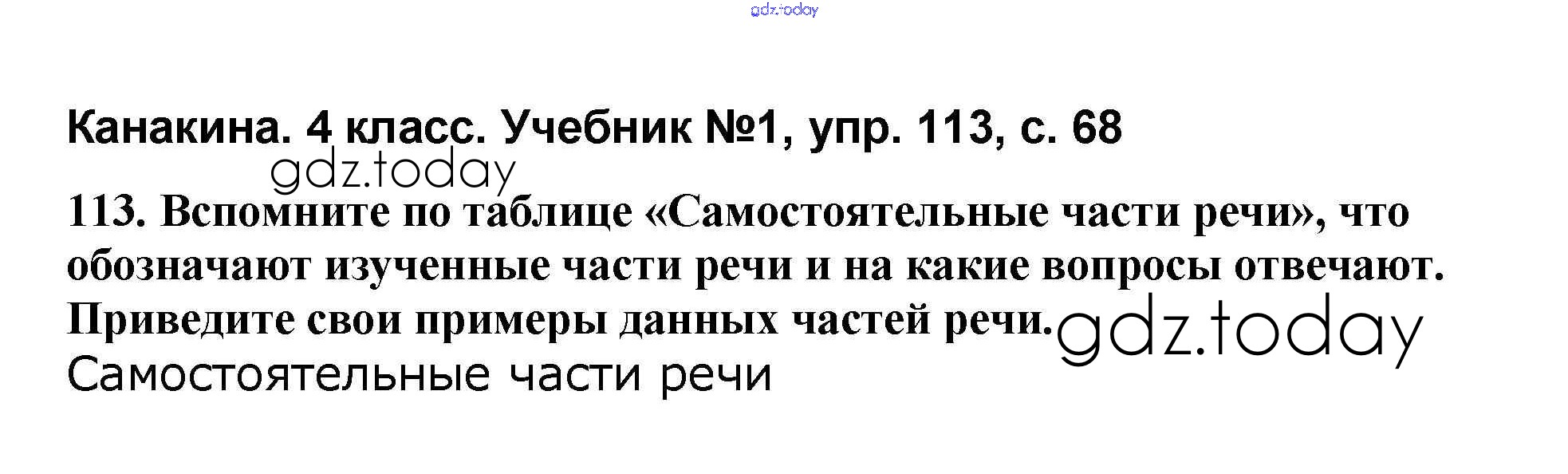 На страницах сайта gdz.today вы найдете учебный и вспомогательный материал, направленный на улучшения знаний школьной программы. ГДЗ - онлайн мир знаний Решение к части 1 113 Учебнику по Русскому языку для 4 класса Канакина, Горецкий Просвещение Школа России 2015