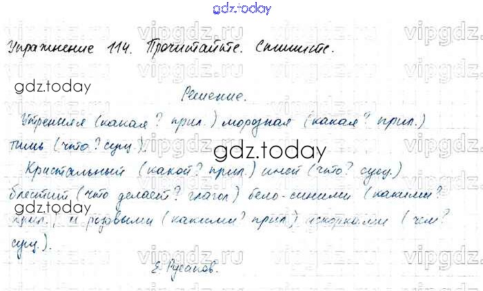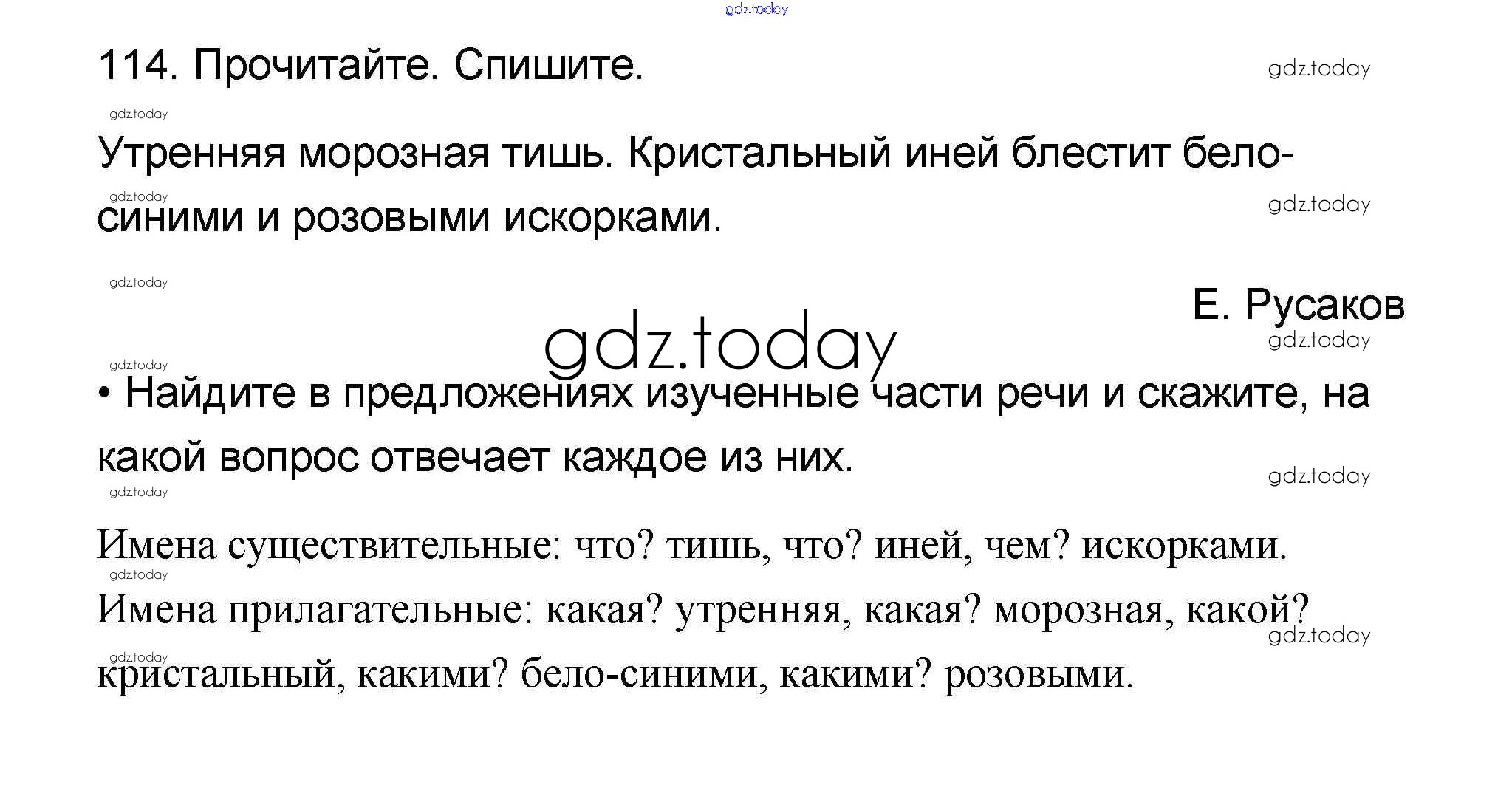 На страницах сайта gdz.today вы найдете учебный и вспомогательный материал, направленный на улучшения знаний школьной программы. ГДЗ - онлайн мир знаний Решение к части 1 114 Учебнику по Русскому языку для 4 класса Канакина, Горецкий Просвещение Школа России 2015