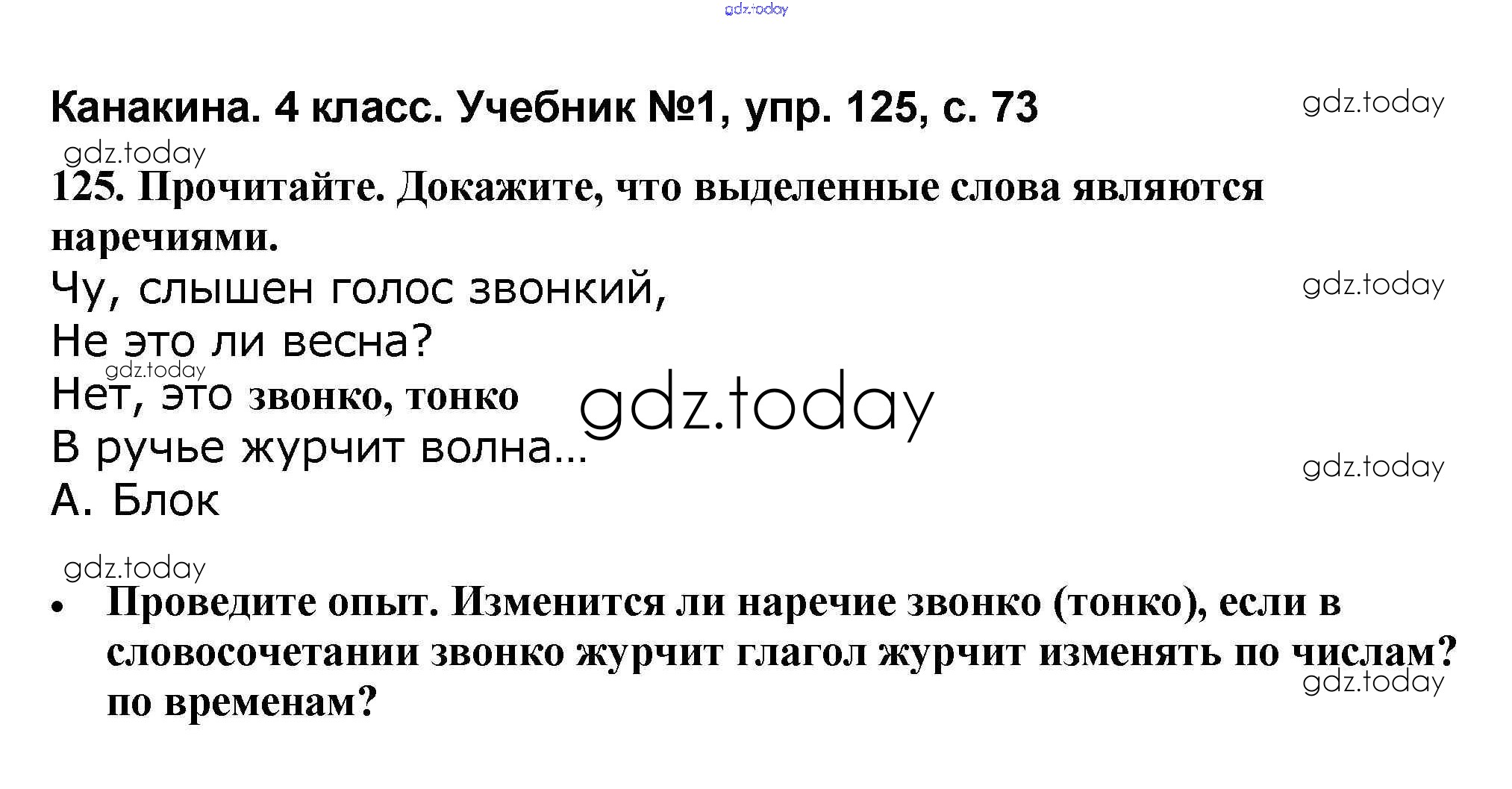 На страницах сайта gdz.today вы найдете учебный и вспомогательный материал, направленный на улучшения знаний школьной программы. ГДЗ - онлайн мир знаний Решение к части 1 125 Учебнику по Русскому языку для 4 класса Канакина, Горецкий Просвещение Школа России 2015