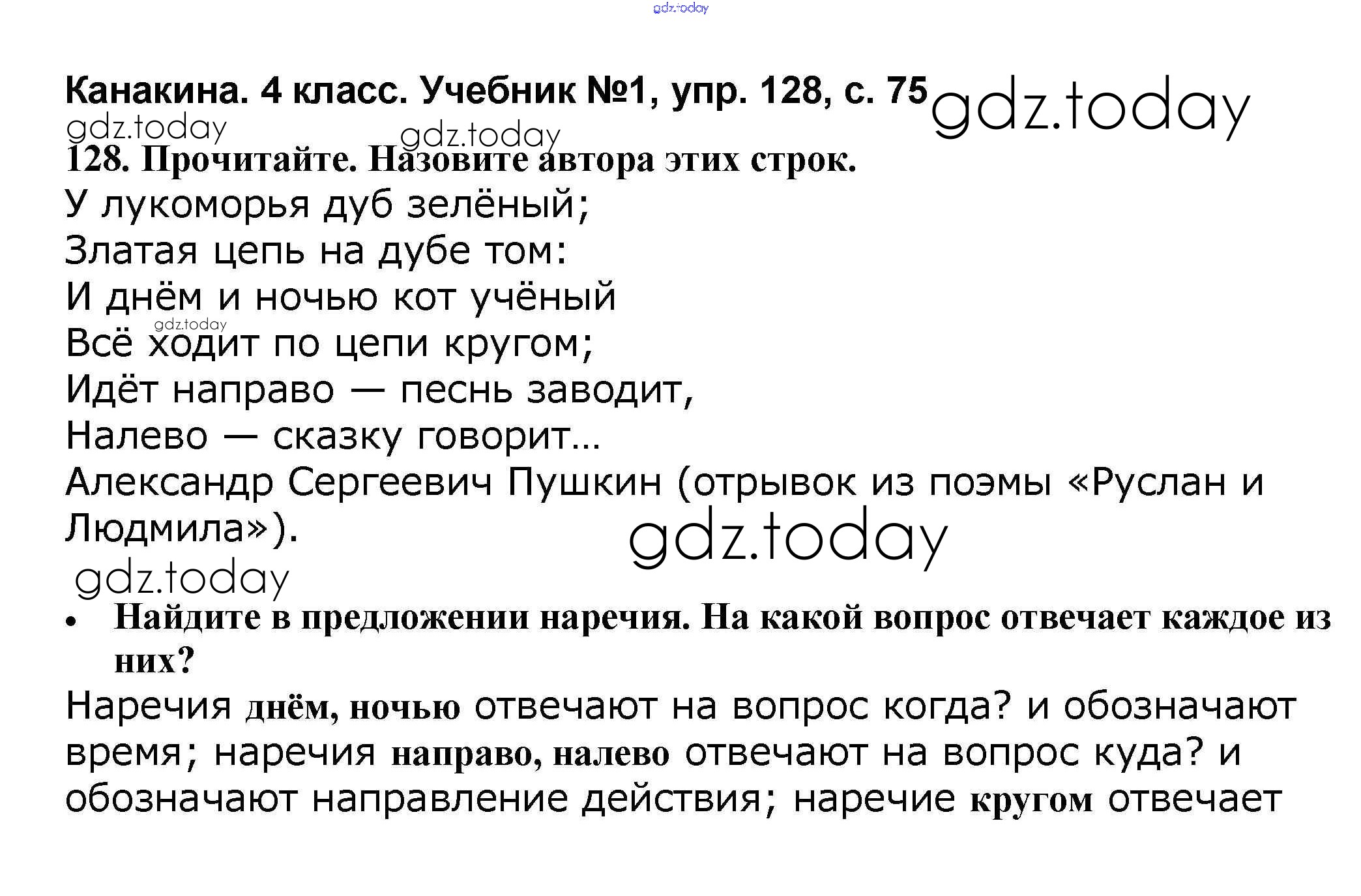 На страницах сайта gdz.today вы найдете учебный и вспомогательный материал, направленный на улучшения знаний школьной программы. ГДЗ - онлайн мир знаний Решение к части 1 128 Учебнику по Русскому языку для 4 класса Канакина, Горецкий Просвещение Школа России 2015