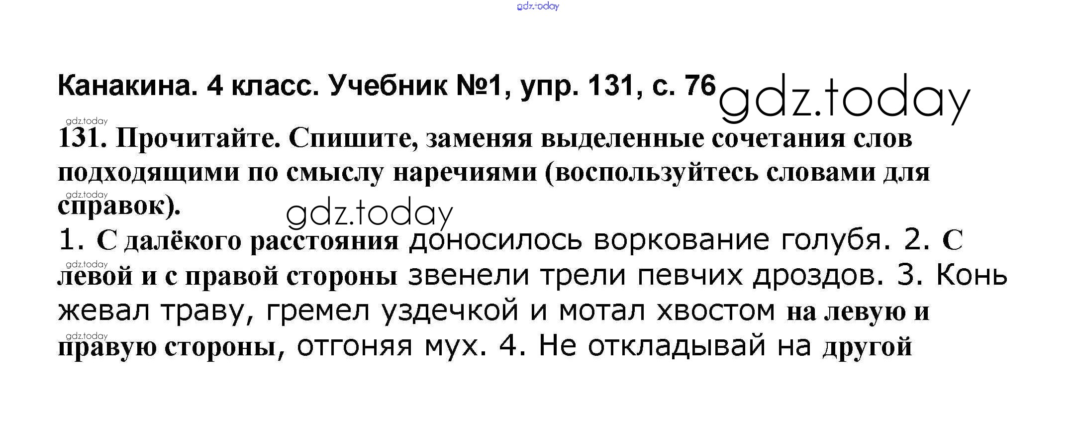 На страницах сайта gdz.today вы найдете учебный и вспомогательный материал, направленный на улучшения знаний школьной программы. ГДЗ - онлайн мир знаний Решение к части 1 131 Учебнику по Русскому языку для 4 класса Канакина, Горецкий Просвещение Школа России 2015