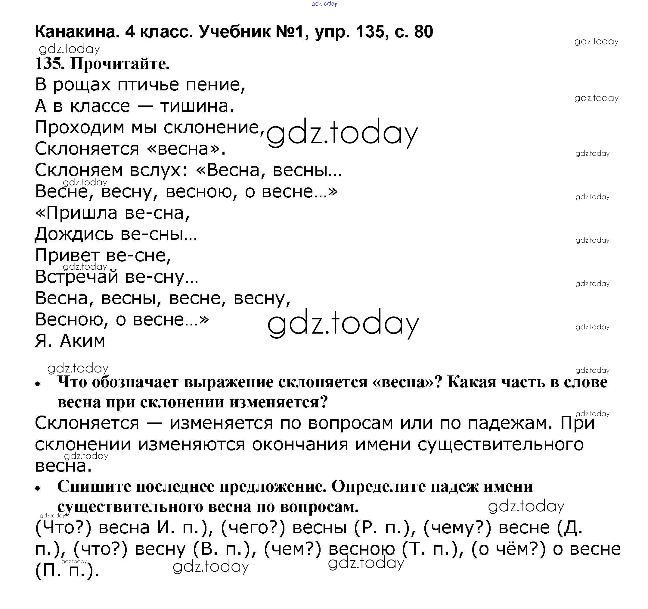 На страницах сайта gdz.today вы найдете учебный и вспомогательный материал, направленный на улучшения знаний школьной программы. ГДЗ - онлайн мир знаний Решение к части 1 135 Учебнику по Русскому языку для 4 класса Канакина, Горецкий Просвещение Школа России 2015