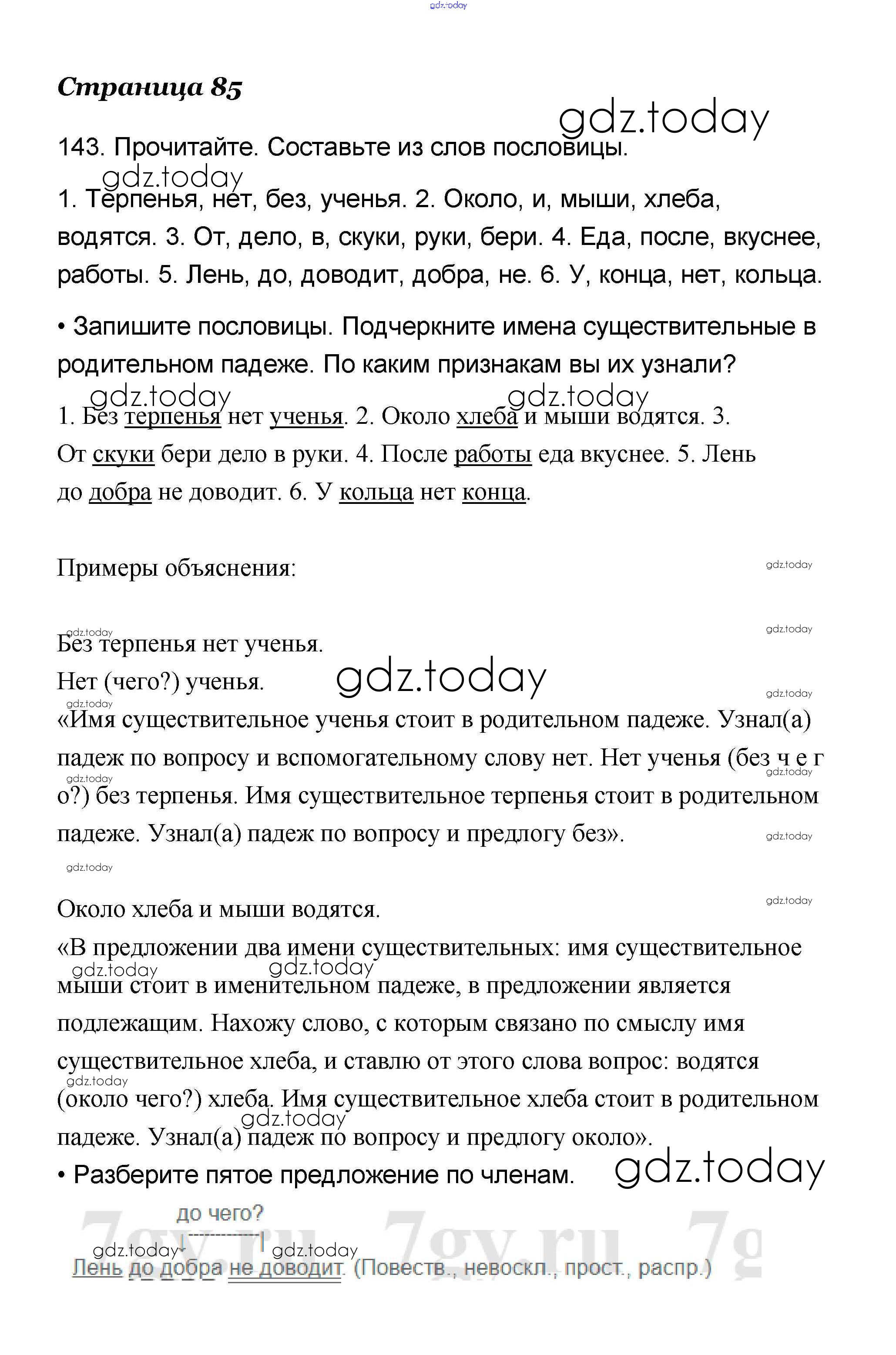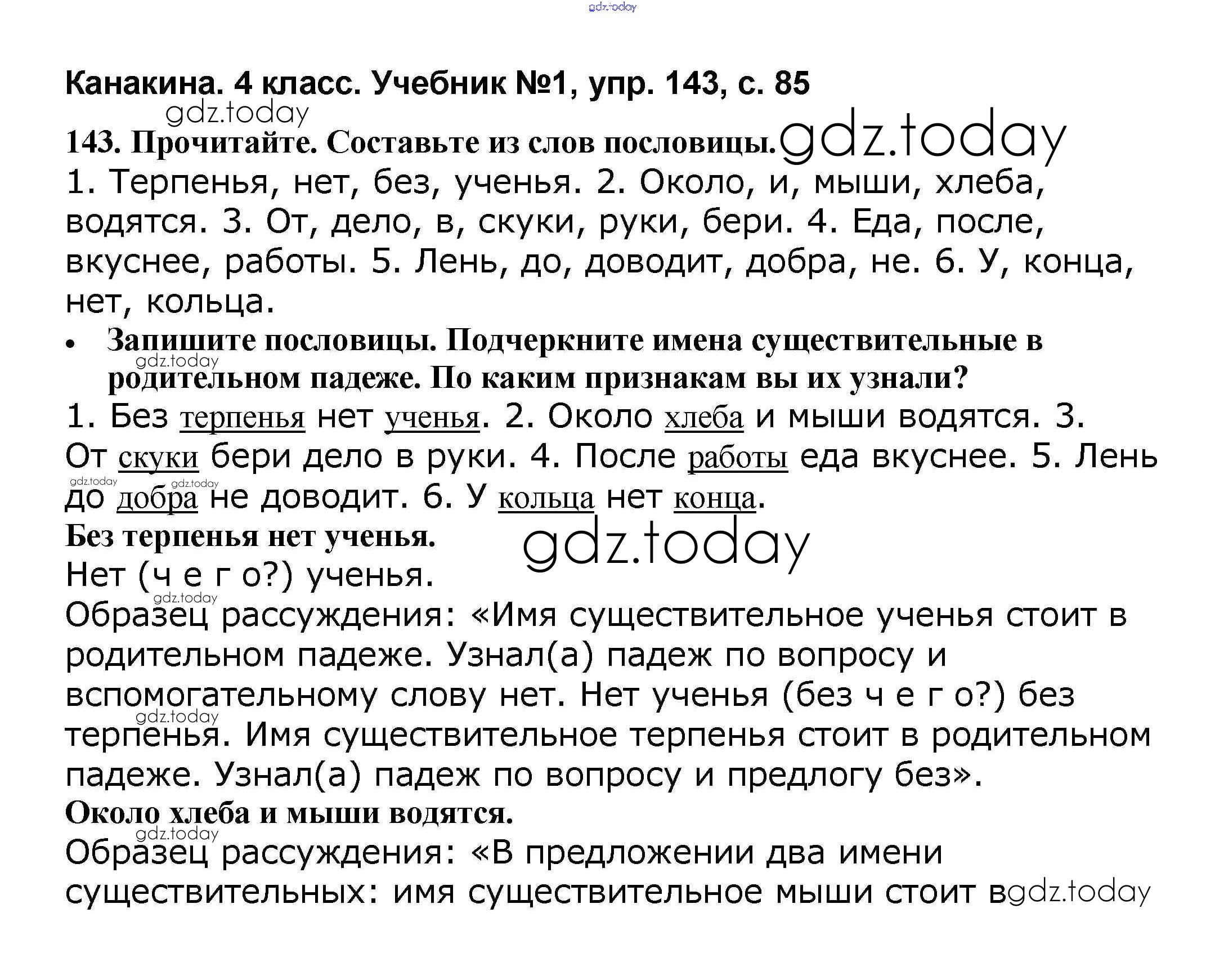 На страницах сайта gdz.today вы найдете учебный и вспомогательный материал, направленный на улучшения знаний школьной программы. ГДЗ - онлайн мир знаний Решение к части 1 143 Учебнику по Русскому языку для 4 класса Канакина, Горецкий Просвещение Школа России 2015