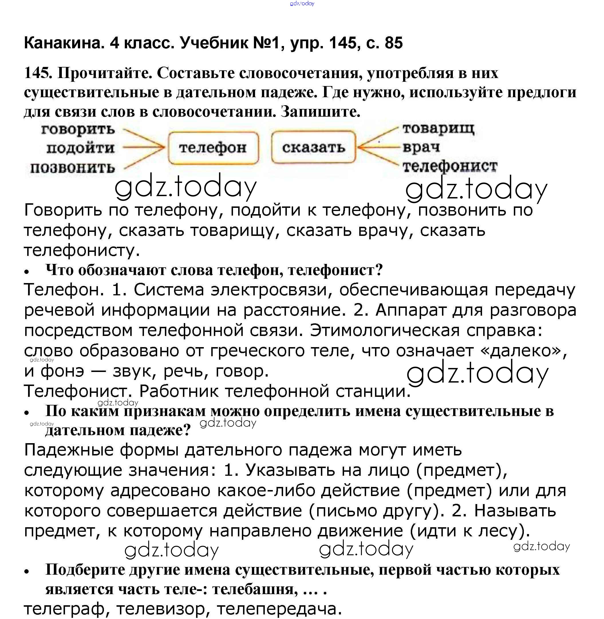 На страницах сайта gdz.today вы найдете учебный и вспомогательный материал, направленный на улучшения знаний школьной программы. ГДЗ - онлайн мир знаний Решение к части 1 145 Учебнику по Русскому языку для 4 класса Канакина, Горецкий Просвещение Школа России 2015