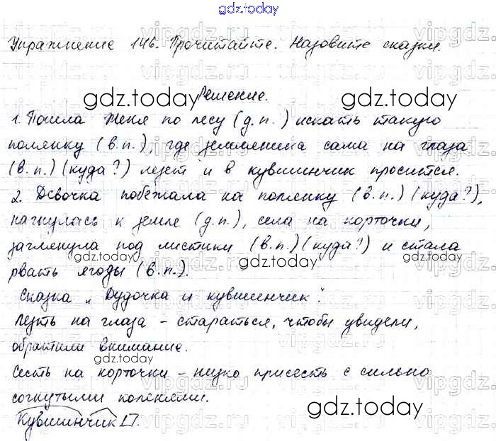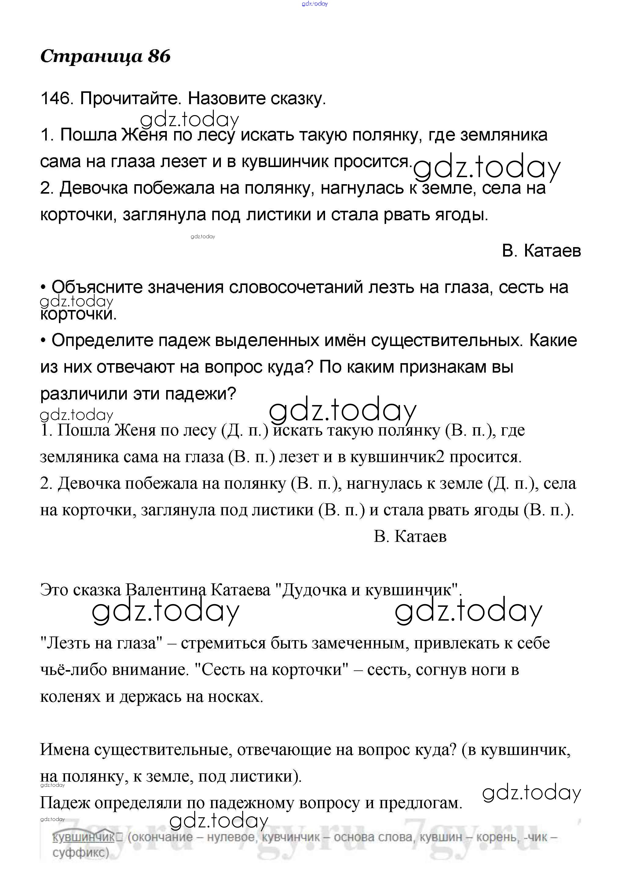 На страницах сайта gdz.today вы найдете учебный и вспомогательный материал, направленный на улучшения знаний школьной программы. ГДЗ - онлайн мир знаний Решение к части 1 146 Учебнику по Русскому языку для 4 класса Канакина, Горецкий Просвещение Школа России 2015