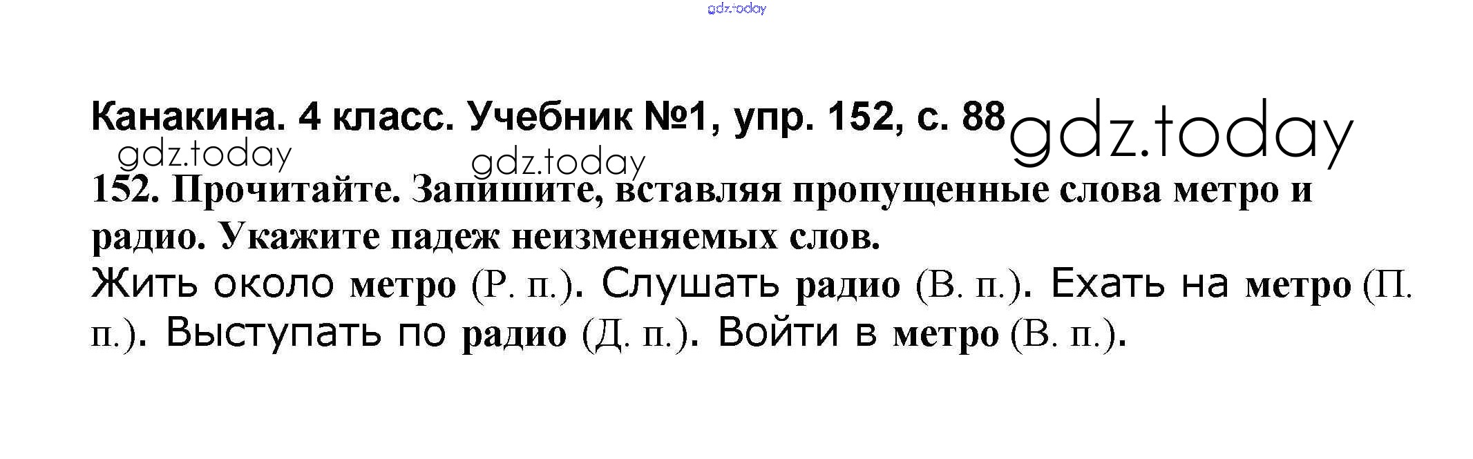 На страницах сайта gdz.today вы найдете учебный и вспомогательный материал, направленный на улучшения знаний школьной программы. ГДЗ - онлайн мир знаний Решение к части 1 152 Учебнику по Русскому языку для 4 класса Канакина, Горецкий Просвещение Школа России 2015