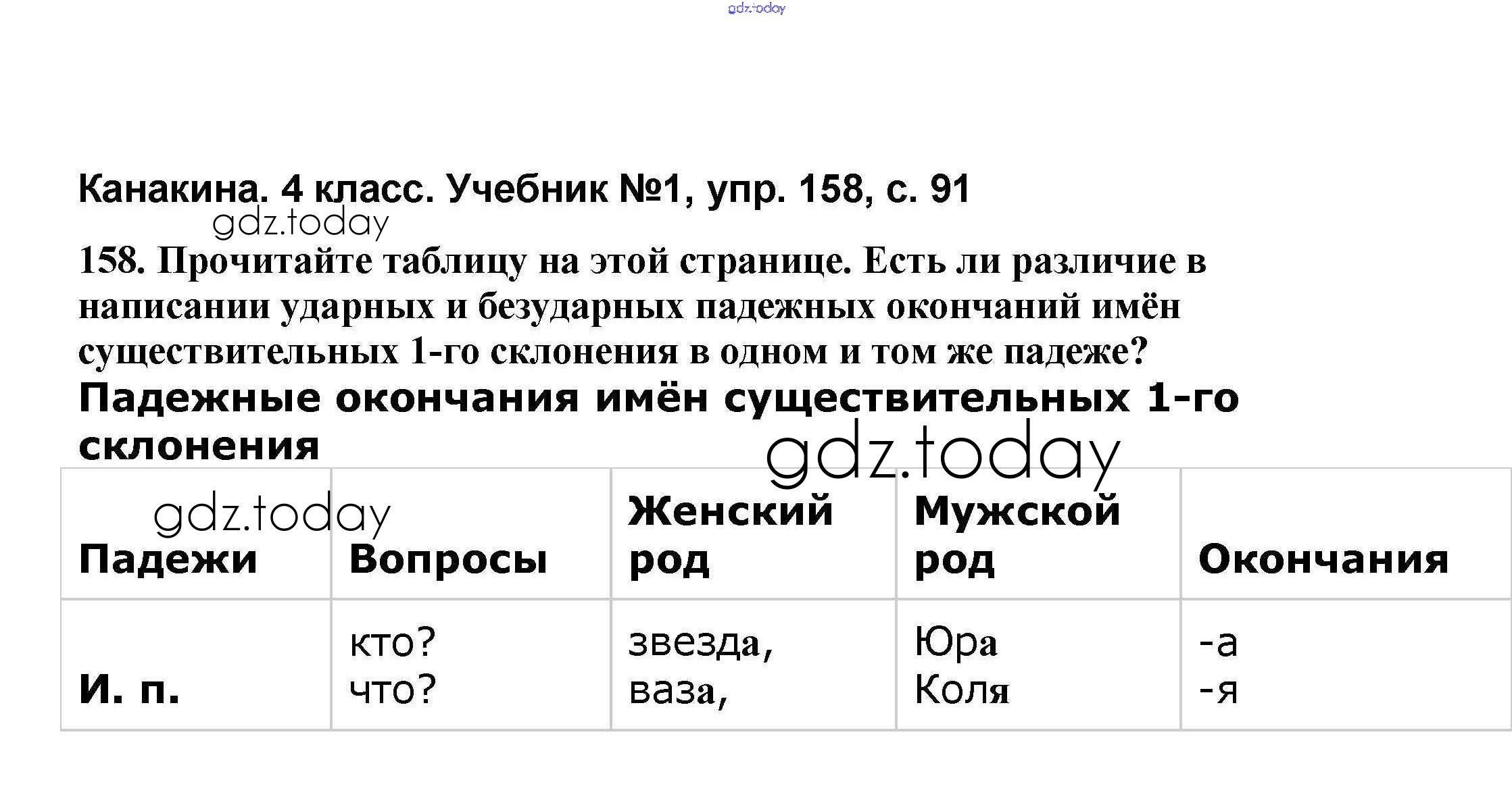 На страницах сайта gdz.today вы найдете учебный и вспомогательный материал, направленный на улучшения знаний школьной программы. ГДЗ - онлайн мир знаний Решение к части 1 158 Учебнику по Русскому языку для 4 класса Канакина, Горецкий Просвещение Школа России 2015