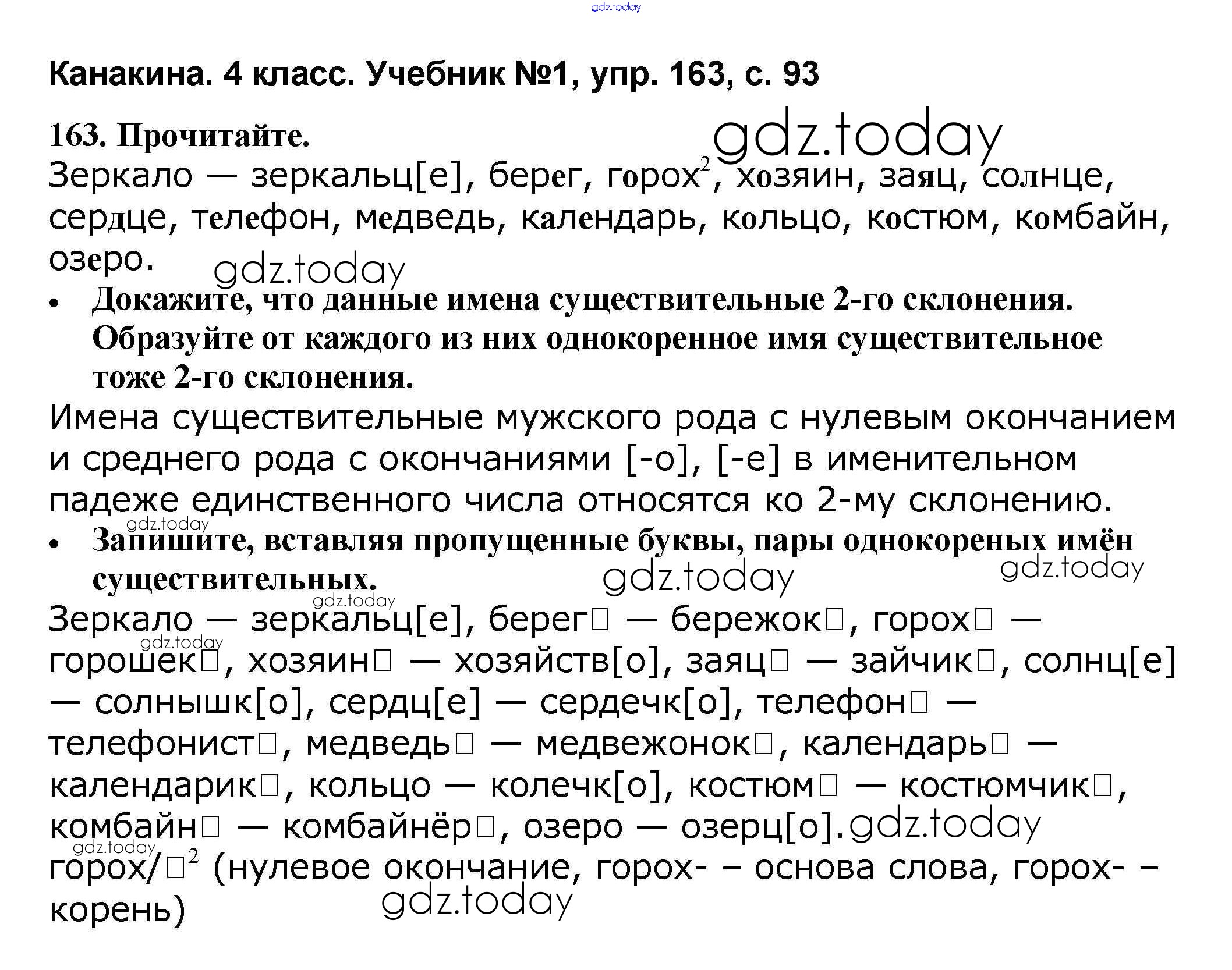 Ответы к Решение к части 1 163 Учебнику по Русскому языку для 4 класса Канакина, Горецкий Просвещение Школа России 2015