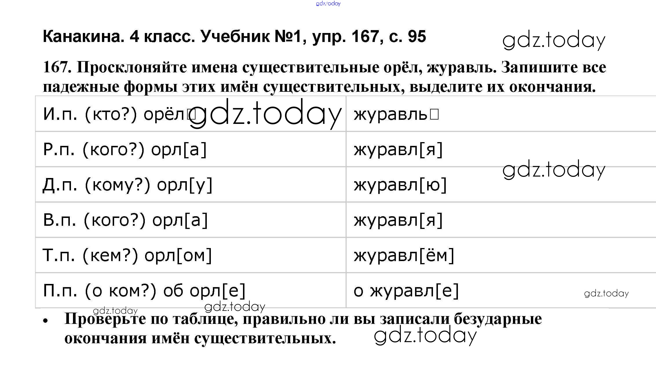 На страницах сайта gdz.today вы найдете учебный и вспомогательный материал, направленный на улучшения знаний школьной программы. ГДЗ - онлайн мир знаний Решение к части 1 167 Учебнику по Русскому языку для 4 класса Канакина, Горецкий Просвещение Школа России 2015