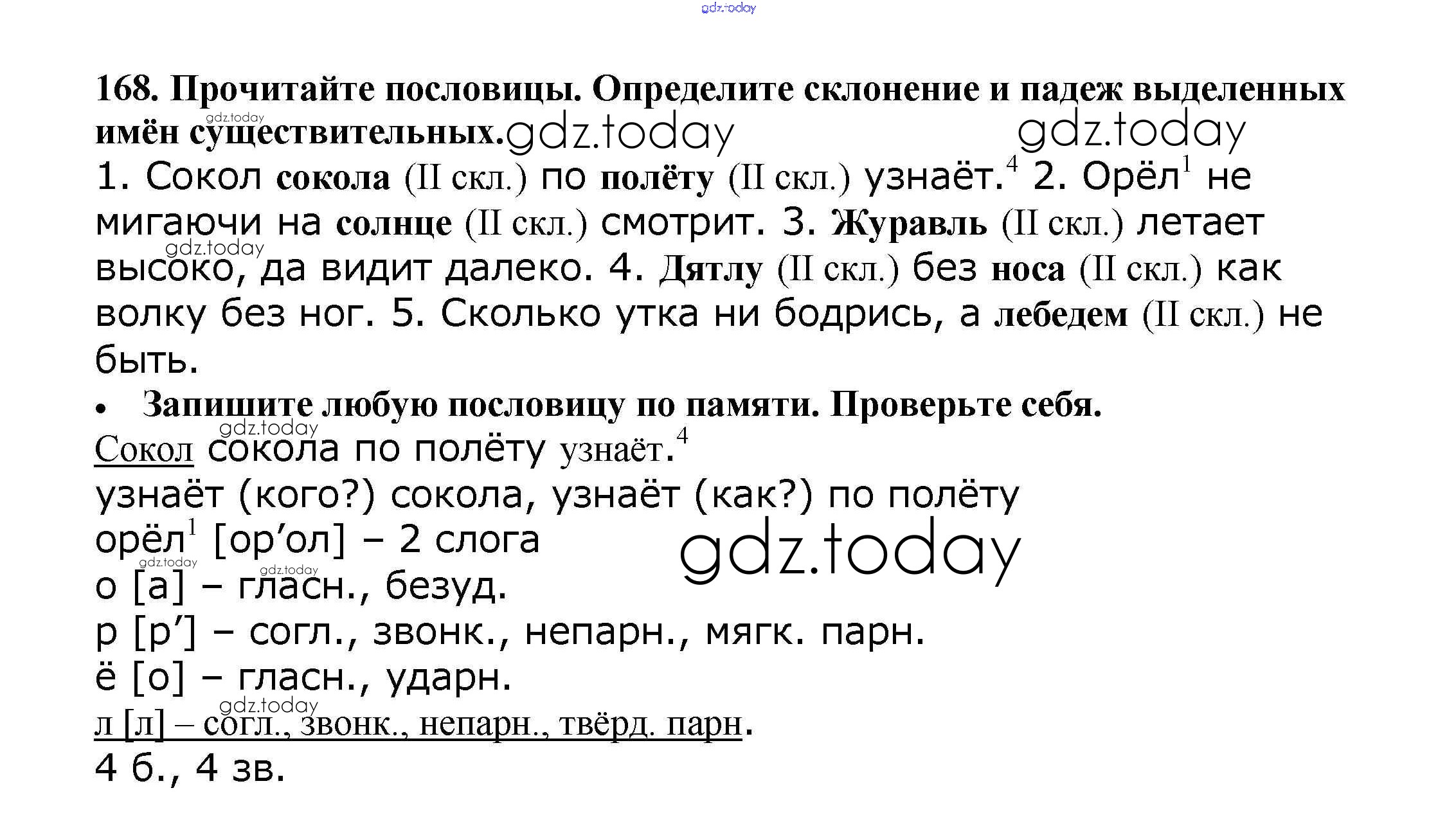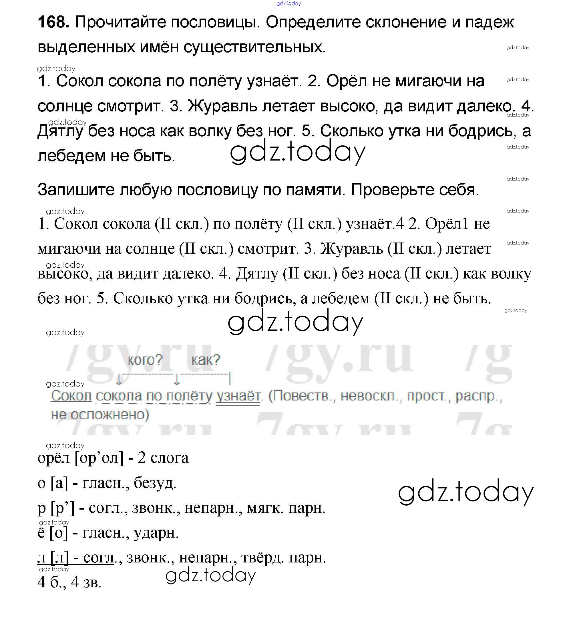 На страницах сайта gdz.today вы найдете учебный и вспомогательный материал, направленный на улучшения знаний школьной программы. ГДЗ - онлайн мир знаний Решение к части 1 168 Учебнику по Русскому языку для 4 класса Канакина, Горецкий Просвещение Школа России 2015
