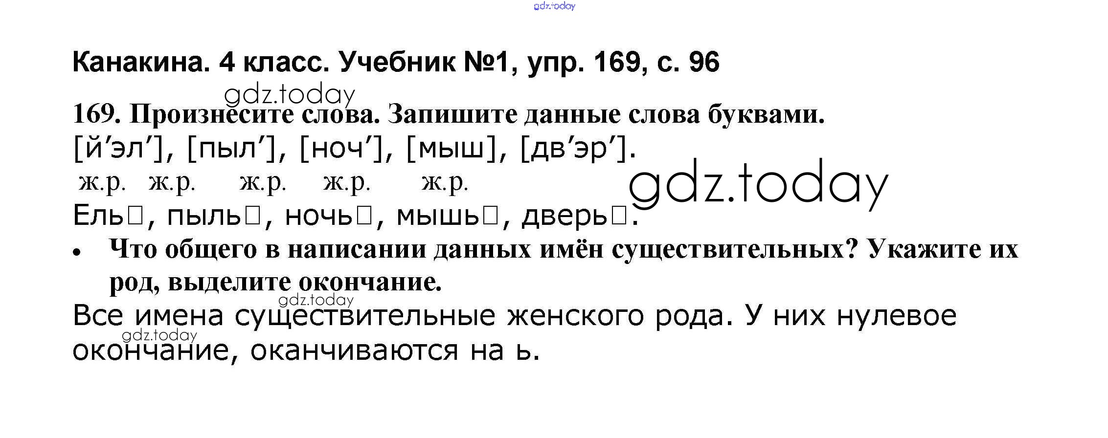 На страницах сайта gdz.today вы найдете учебный и вспомогательный материал, направленный на улучшения знаний школьной программы. ГДЗ - онлайн мир знаний Решение к части 1 169 Учебнику по Русскому языку для 4 класса Канакина, Горецкий Просвещение Школа России 2015