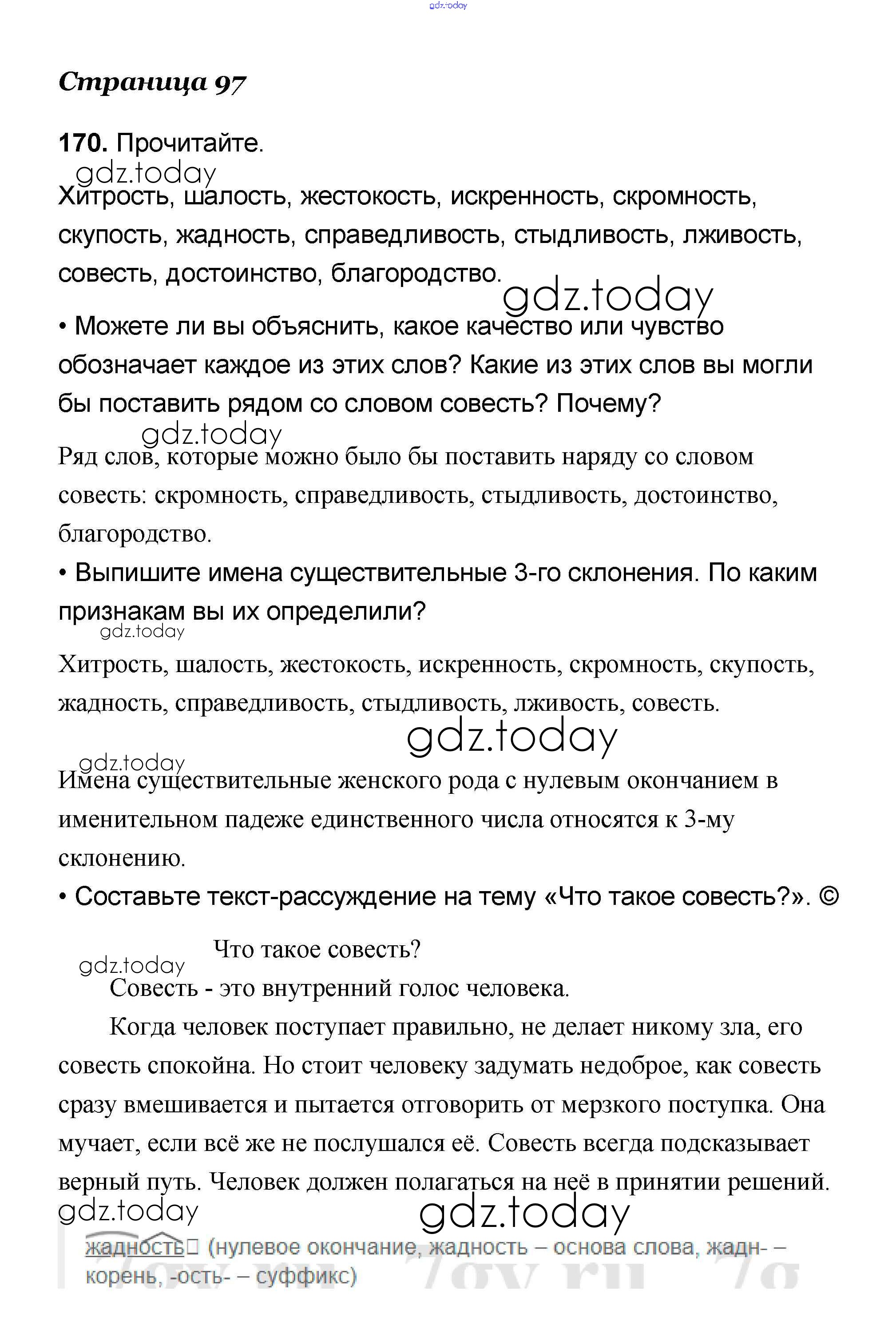 На страницах сайта gdz.today вы найдете учебный и вспомогательный материал, направленный на улучшения знаний школьной программы. ГДЗ - онлайн мир знаний Решение к части 1 170 Учебнику по Русскому языку для 4 класса Канакина, Горецкий Просвещение Школа России 2015