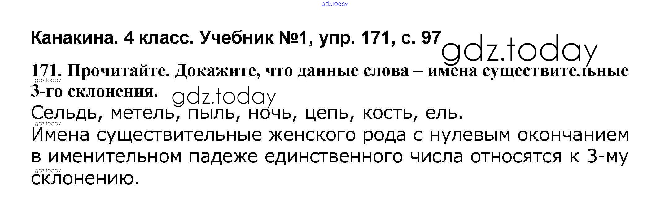 На страницах сайта gdz.today вы найдете учебный и вспомогательный материал, направленный на улучшения знаний школьной программы. ГДЗ - онлайн мир знаний Решение к части 1 171 Учебнику по Русскому языку для 4 класса Канакина, Горецкий Просвещение Школа России 2015