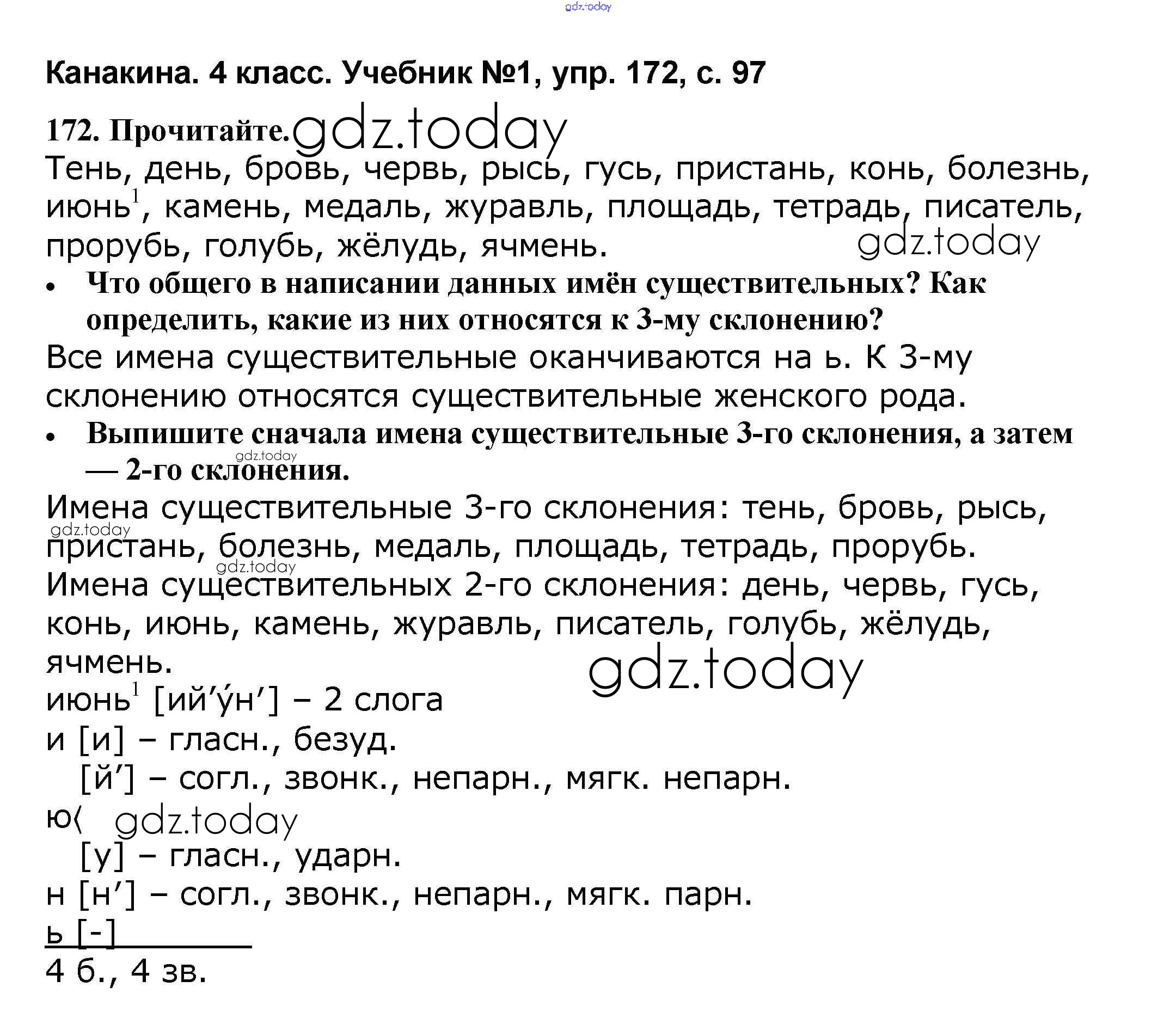 На страницах сайта gdz.today вы найдете учебный и вспомогательный материал, направленный на улучшения знаний школьной программы. ГДЗ - онлайн мир знаний Решение к части 1 172 Учебнику по Русскому языку для 4 класса Канакина, Горецкий Просвещение Школа России 2015