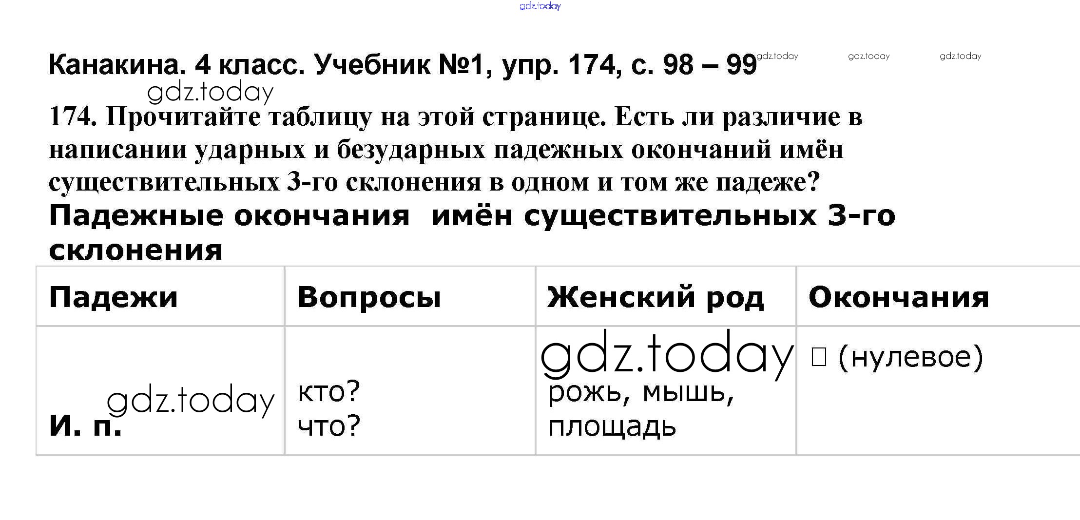 На страницах сайта gdz.today вы найдете учебный и вспомогательный материал, направленный на улучшения знаний школьной программы. ГДЗ - онлайн мир знаний Решение к части 1 174 Учебнику по Русскому языку для 4 класса Канакина, Горецкий Просвещение Школа России 2015