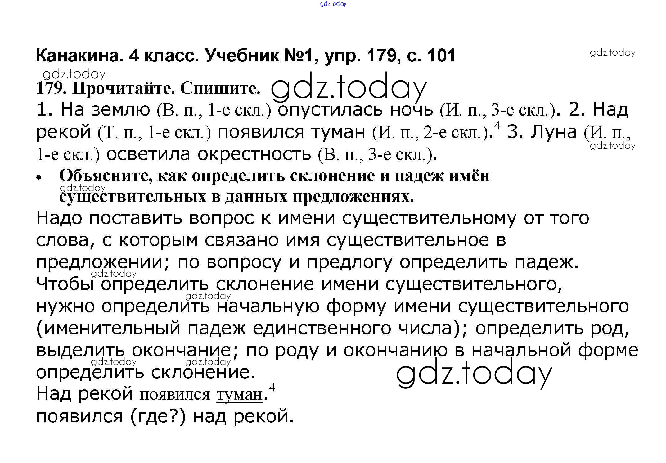 На страницах сайта gdz.today вы найдете учебный и вспомогательный материал, направленный на улучшения знаний школьной программы. ГДЗ - онлайн мир знаний Решение к части 1 179 Учебнику по Русскому языку для 4 класса Канакина, Горецкий Просвещение Школа России 2015
