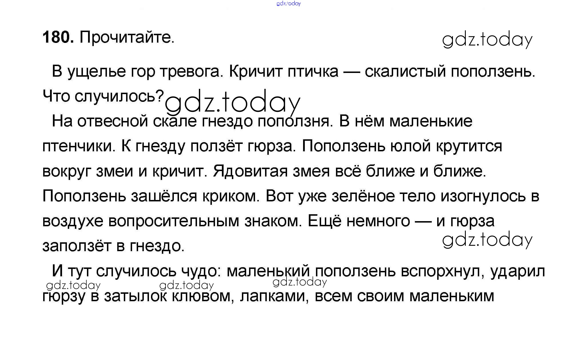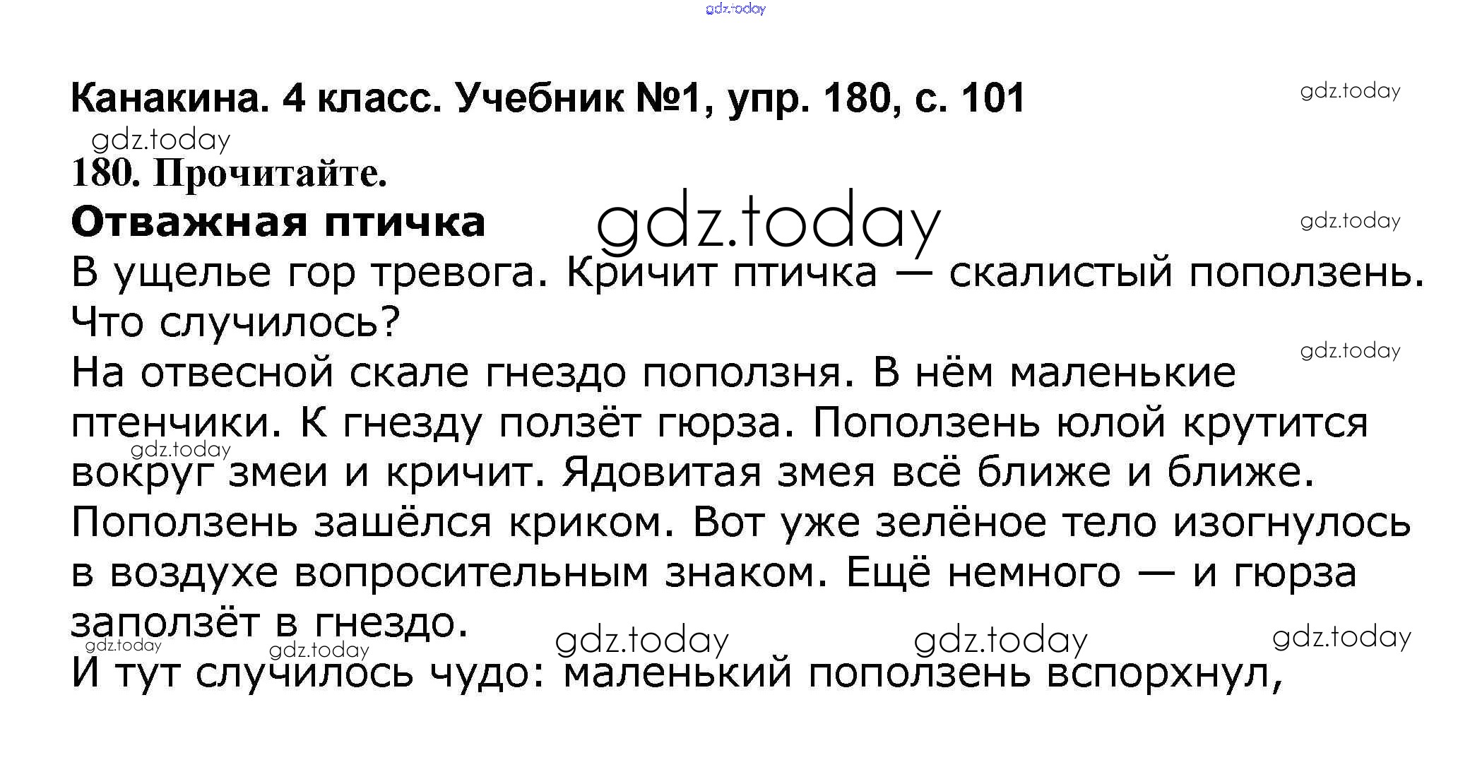 На страницах сайта gdz.today вы найдете учебный и вспомогательный материал, направленный на улучшения знаний школьной программы. ГДЗ - онлайн мир знаний Решение к части 1 180 Учебнику по Русскому языку для 4 класса Канакина, Горецкий Просвещение Школа России 2015