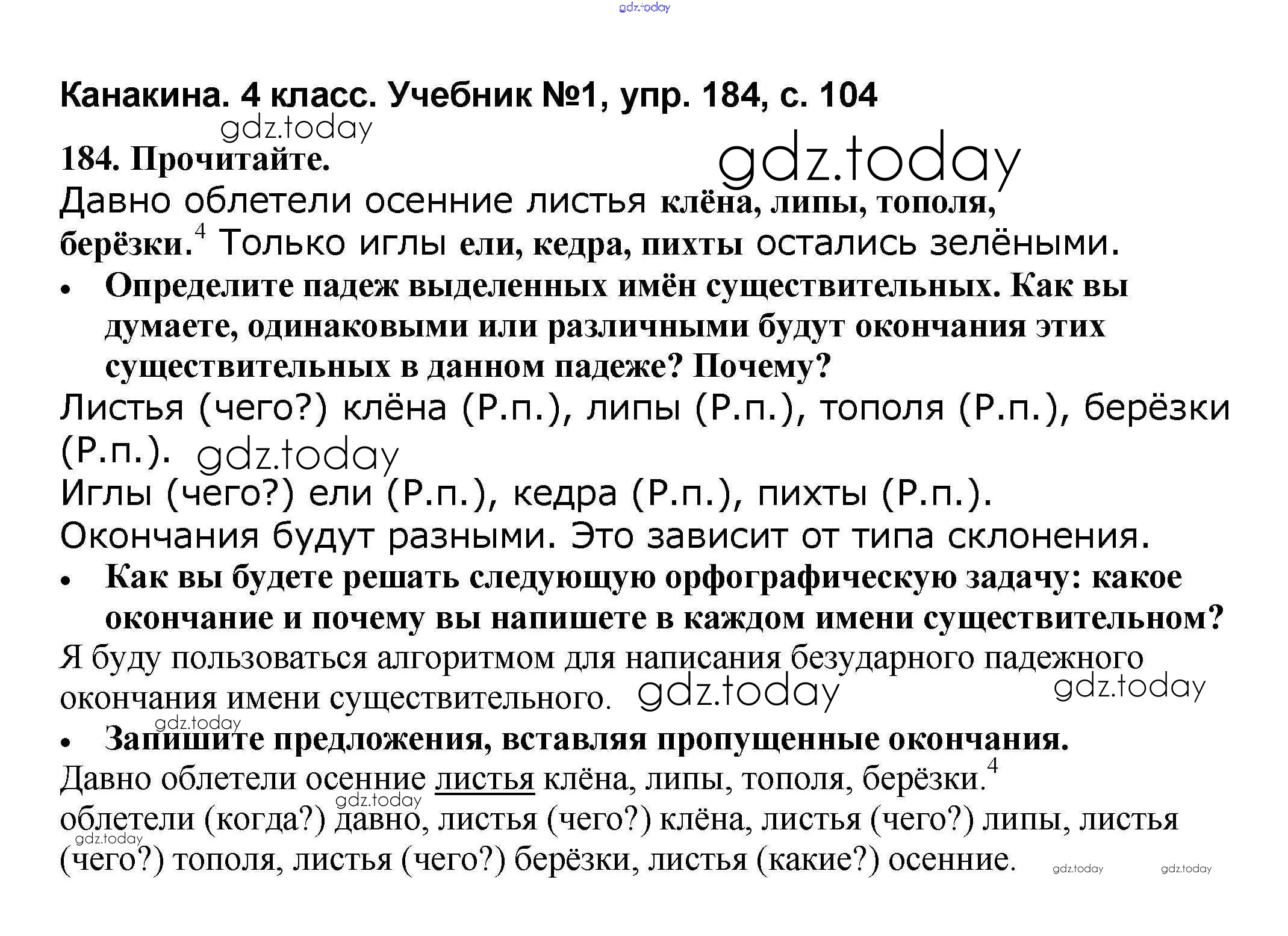 На страницах сайта gdz.today вы найдете учебный и вспомогательный материал, направленный на улучшения знаний школьной программы. ГДЗ - онлайн мир знаний Решение к части 1 184 Учебнику по Русскому языку для 4 класса Канакина, Горецкий Просвещение Школа России 2015