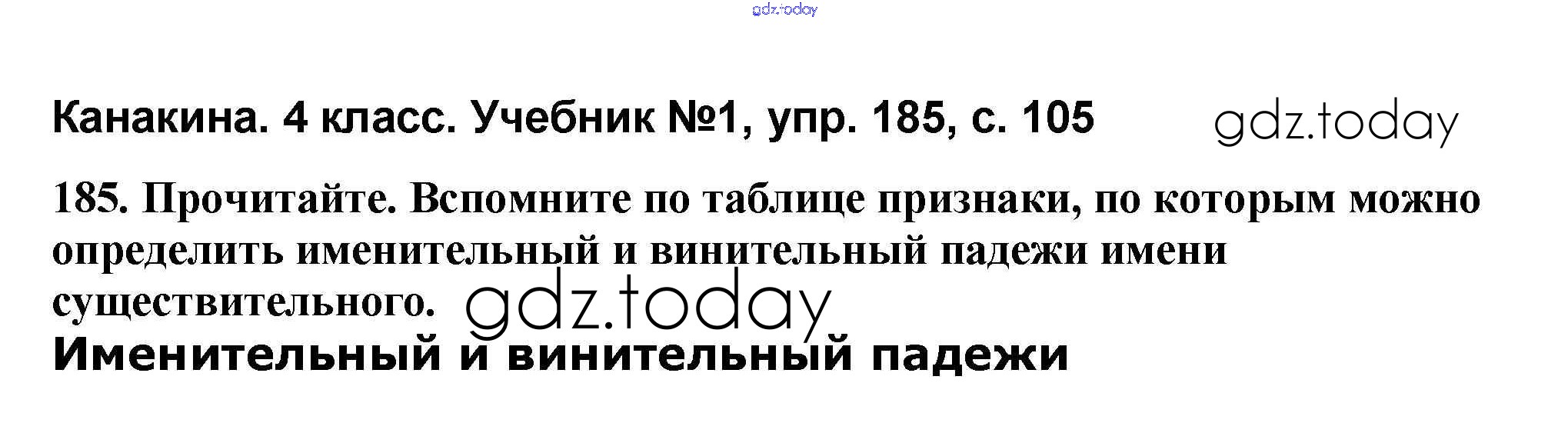 На страницах сайта gdz.today вы найдете учебный и вспомогательный материал, направленный на улучшения знаний школьной программы. ГДЗ - онлайн мир знаний Решение к части 1 185 Учебнику по Русскому языку для 4 класса Канакина, Горецкий Просвещение Школа России 2015
