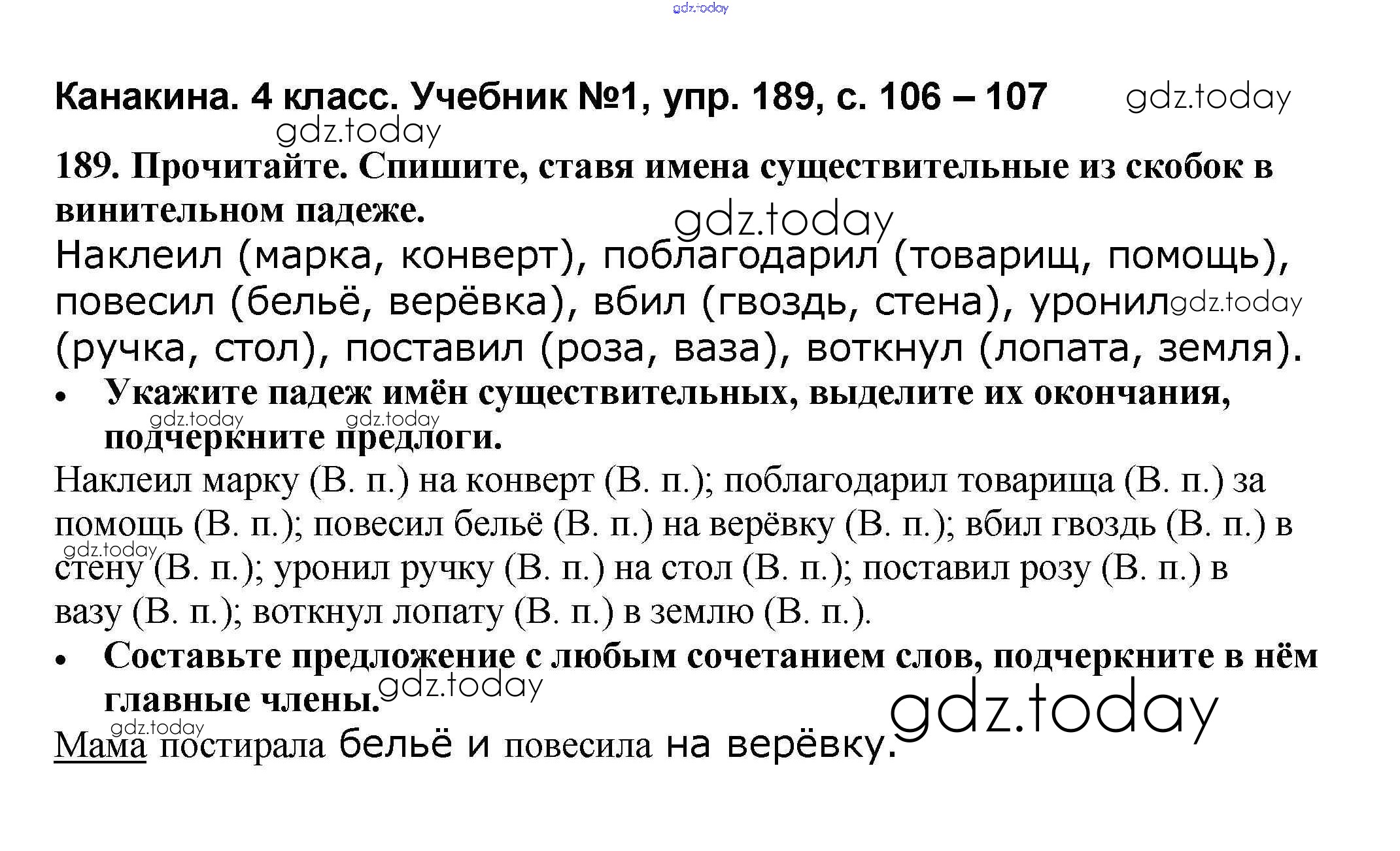 На страницах сайта gdz.today вы найдете учебный и вспомогательный материал, направленный на улучшения знаний школьной программы. ГДЗ - онлайн мир знаний Решение к части 1 189 Учебнику по Русскому языку для 4 класса Канакина, Горецкий Просвещение Школа России 2015