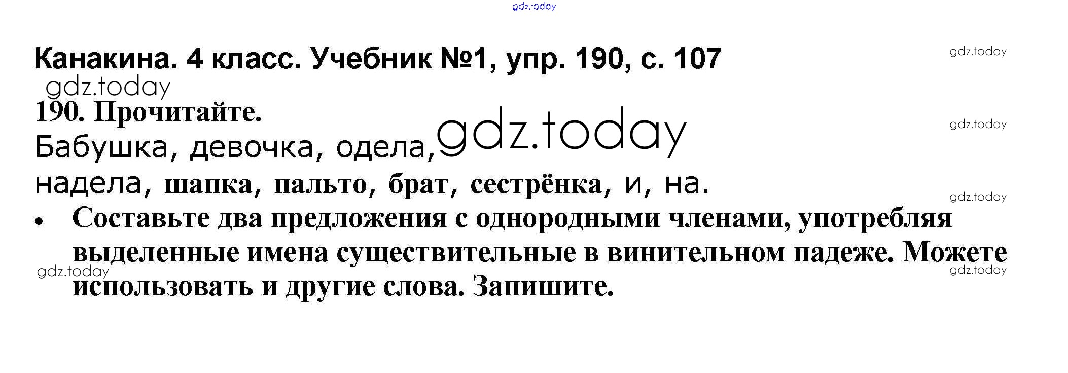 На страницах сайта gdz.today вы найдете учебный и вспомогательный материал, направленный на улучшения знаний школьной программы. ГДЗ - онлайн мир знаний Решение к части 1 190 Учебнику по Русскому языку для 4 класса Канакина, Горецкий Просвещение Школа России 2015
