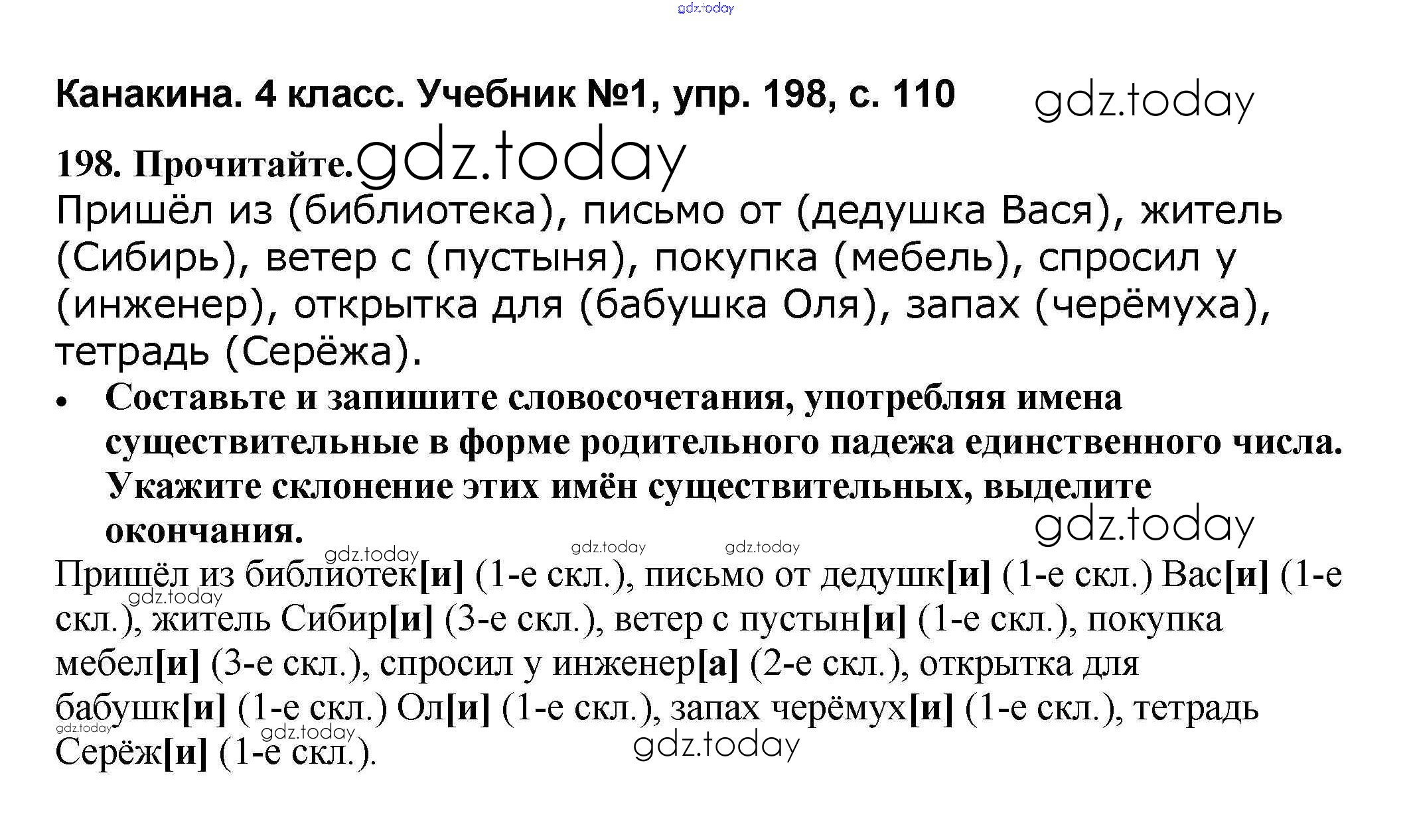 На страницах сайта gdz.today вы найдете учебный и вспомогательный материал, направленный на улучшения знаний школьной программы. ГДЗ - онлайн мир знаний Решение к части 1 198 Учебнику по Русскому языку для 4 класса Канакина, Горецкий Просвещение Школа России 2015