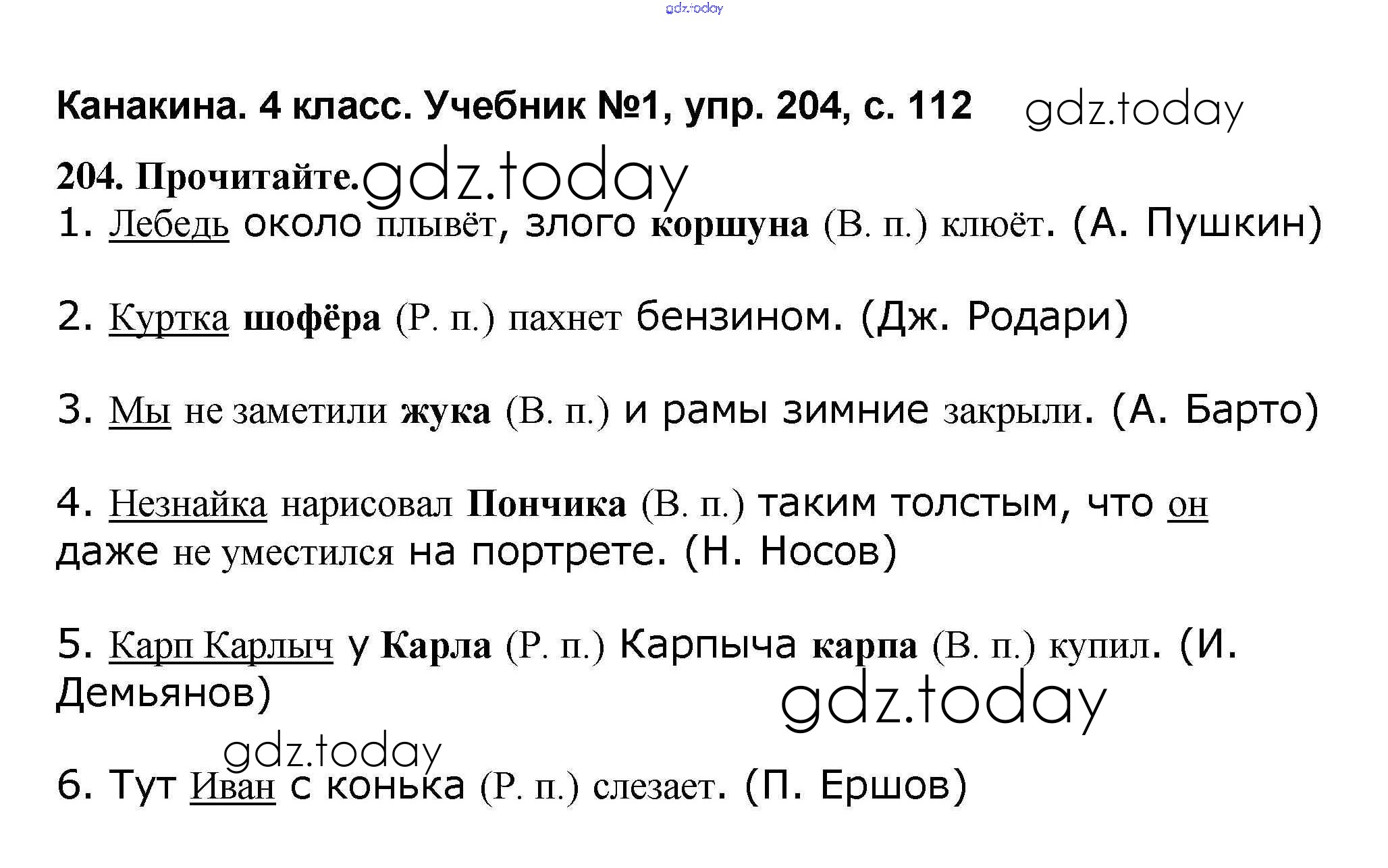 На страницах сайта gdz.today вы найдете учебный и вспомогательный материал, направленный на улучшения знаний школьной программы. ГДЗ - онлайн мир знаний Решение к части 1 204 Учебнику по Русскому языку для 4 класса Канакина, Горецкий Просвещение Школа России 2015