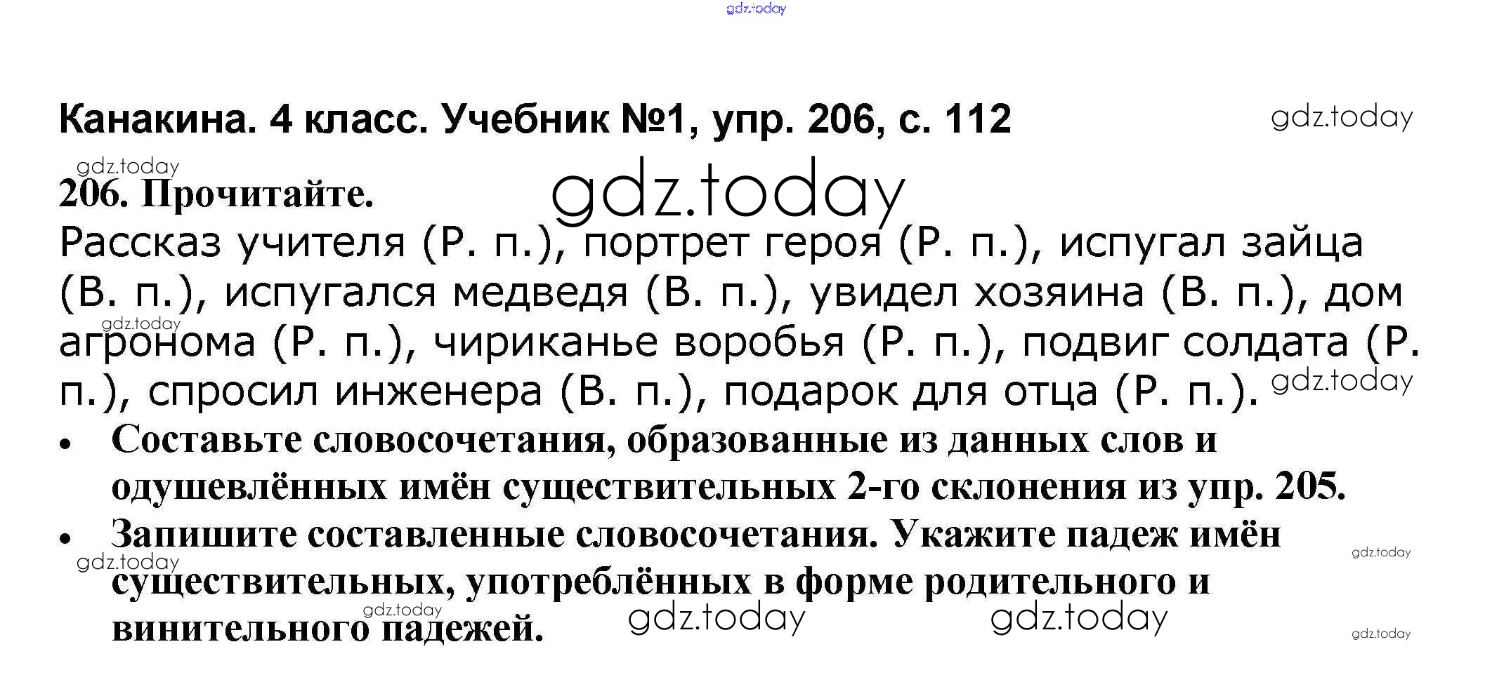 На страницах сайта gdz.today вы найдете учебный и вспомогательный материал, направленный на улучшения знаний школьной программы. ГДЗ - онлайн мир знаний Решение к части 1 206 Учебнику по Русскому языку для 4 класса Канакина, Горецкий Просвещение Школа России 2015