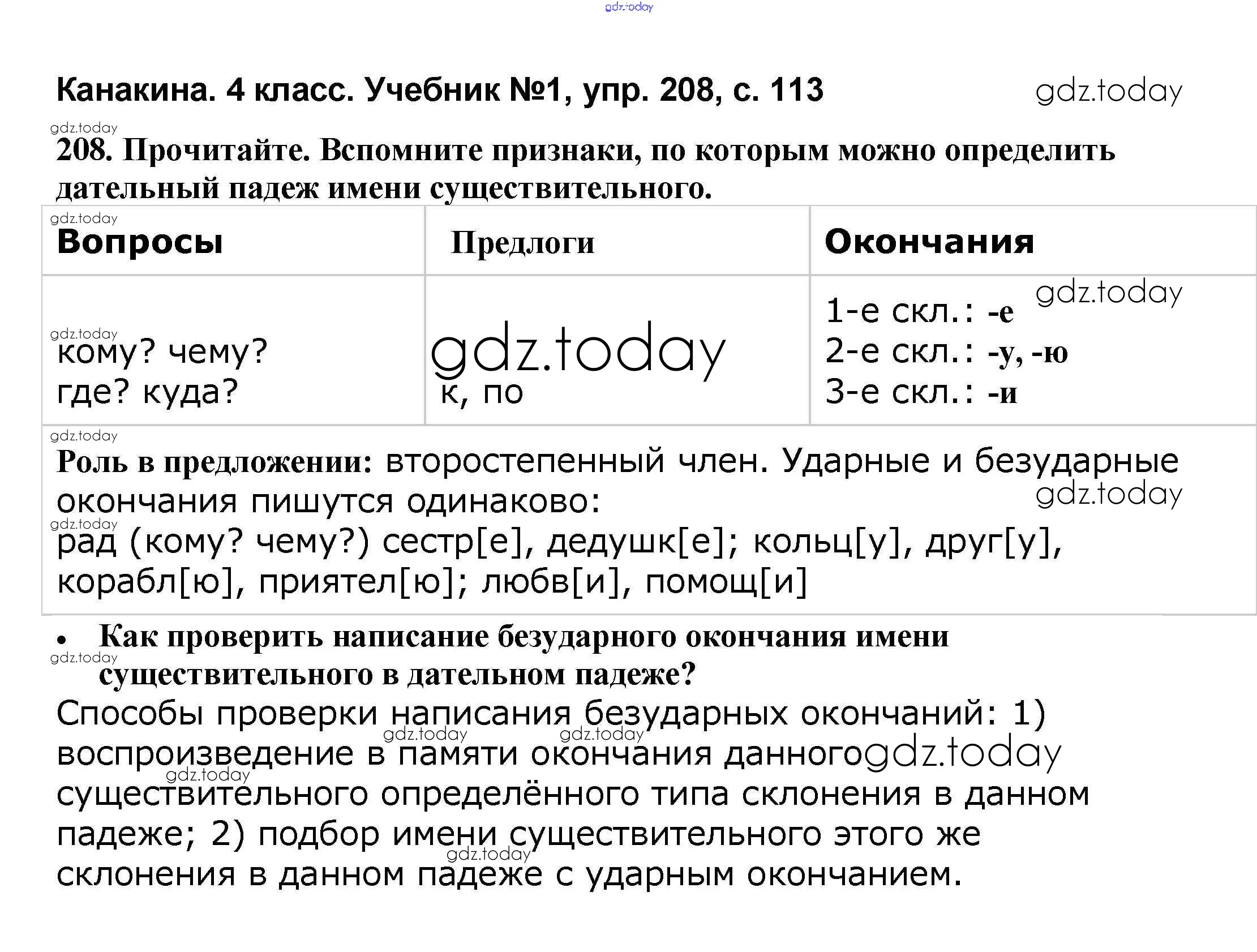 На страницах сайта gdz.today вы найдете учебный и вспомогательный материал, направленный на улучшения знаний школьной программы. ГДЗ - онлайн мир знаний Решение к части 1 208 Учебнику по Русскому языку для 4 класса Канакина, Горецкий Просвещение Школа России 2015
