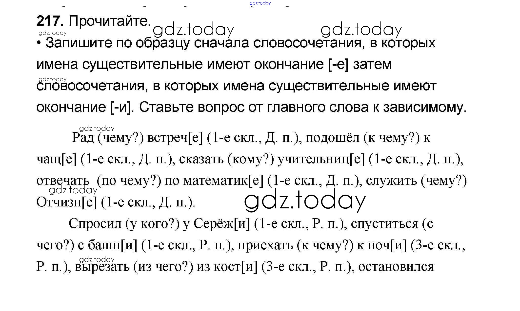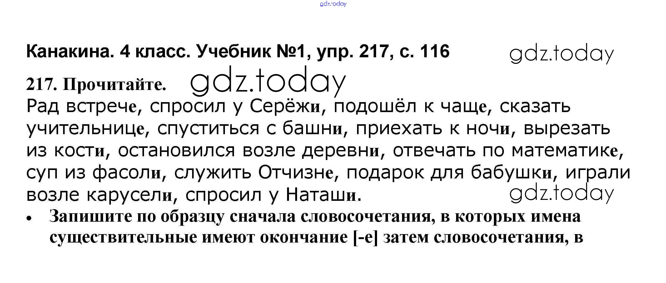 На страницах сайта gdz.today вы найдете учебный и вспомогательный материал, направленный на улучшения знаний школьной программы. ГДЗ - онлайн мир знаний Решение к части 1 217 Учебнику по Русскому языку для 4 класса Канакина, Горецкий Просвещение Школа России 2015