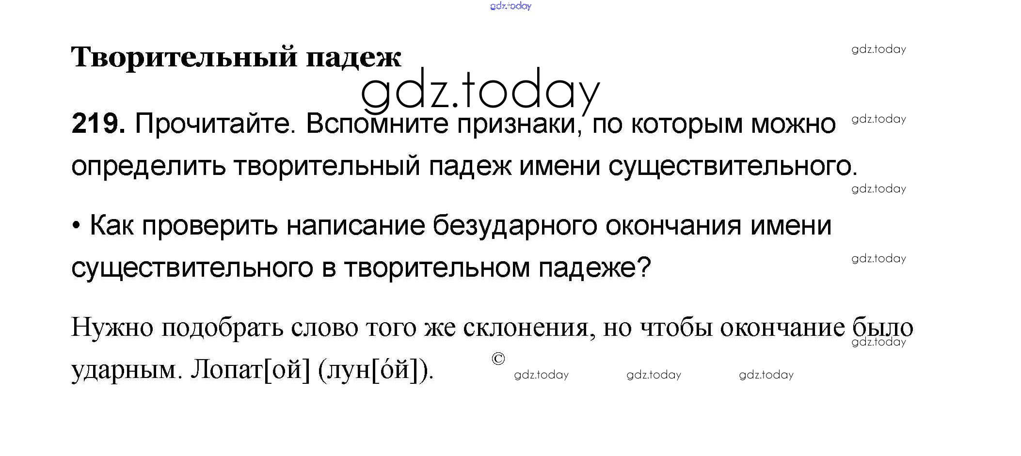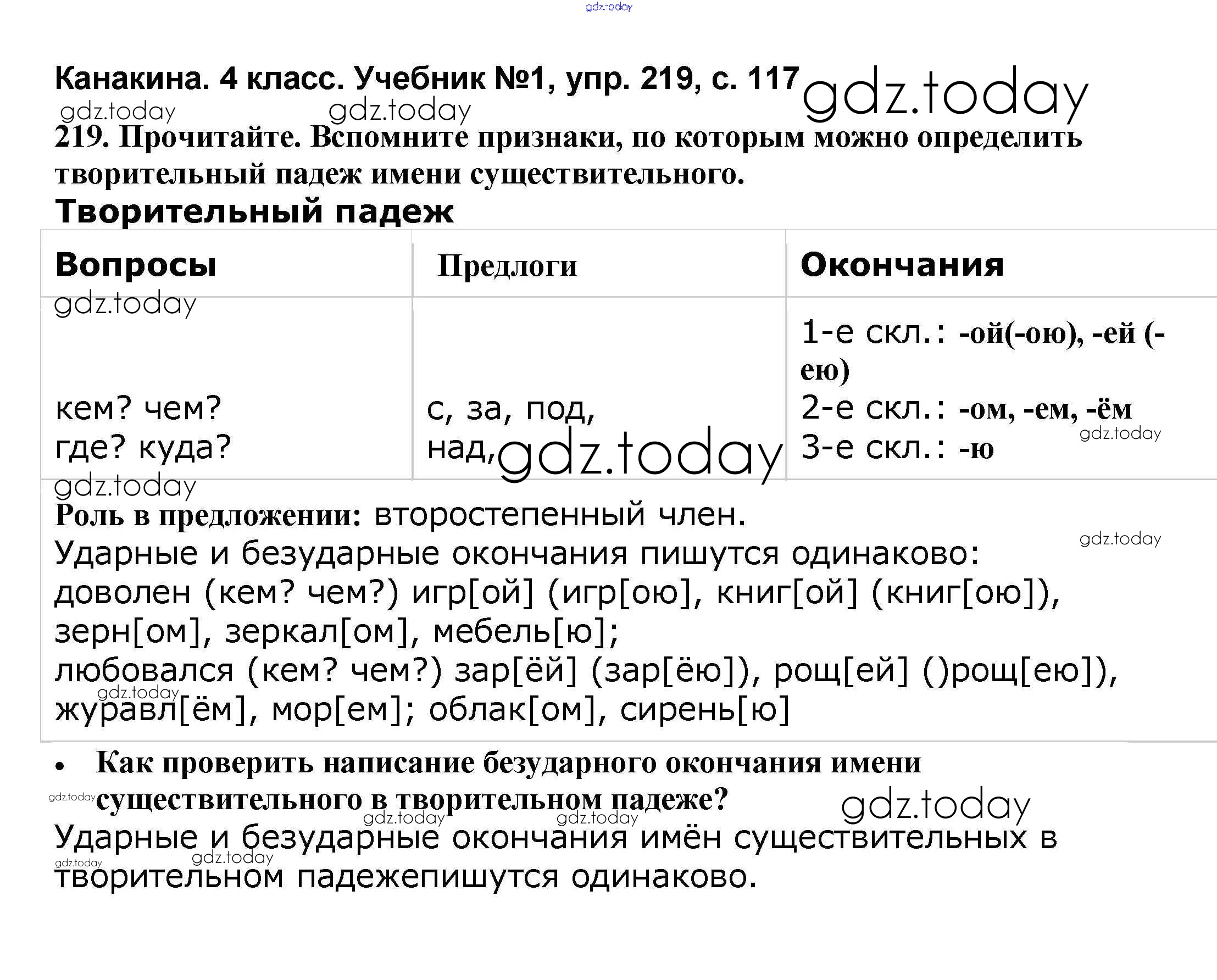 На страницах сайта gdz.today вы найдете учебный и вспомогательный материал, направленный на улучшения знаний школьной программы. ГДЗ - онлайн мир знаний Решение к части 1 219 Учебнику по Русскому языку для 4 класса Канакина, Горецкий Просвещение Школа России 2015