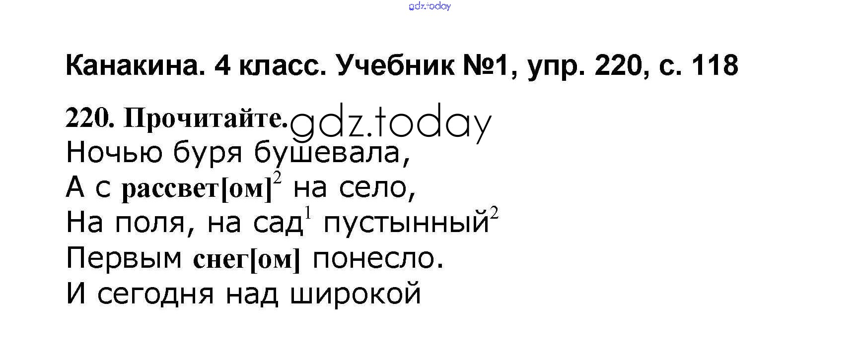 На страницах сайта gdz.today вы найдете учебный и вспомогательный материал, направленный на улучшения знаний школьной программы. ГДЗ - онлайн мир знаний Решение к части 1 220 Учебнику по Русскому языку для 4 класса Канакина, Горецкий Просвещение Школа России 2015