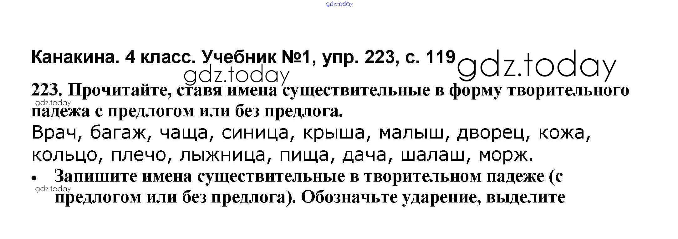 На страницах сайта gdz.today вы найдете учебный и вспомогательный материал, направленный на улучшения знаний школьной программы. ГДЗ - онлайн мир знаний Решение к части 1 223 Учебнику по Русскому языку для 4 класса Канакина, Горецкий Просвещение Школа России 2015