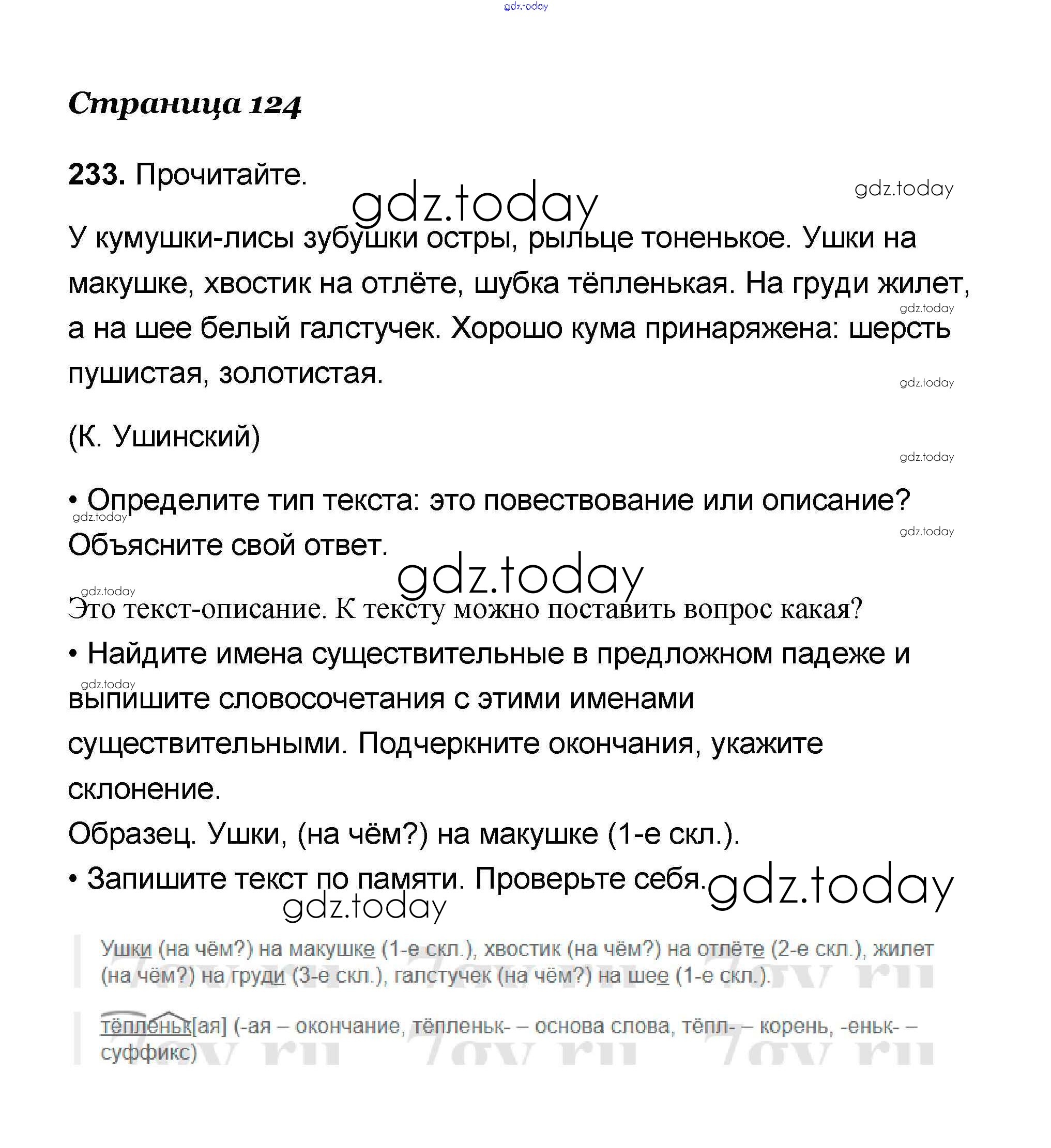 На страницах сайта gdz.today вы найдете учебный и вспомогательный материал, направленный на улучшения знаний школьной программы. ГДЗ - онлайн мир знаний Решение к части 1 233 Учебнику по Русскому языку для 4 класса Канакина, Горецкий Просвещение Школа России 2015
