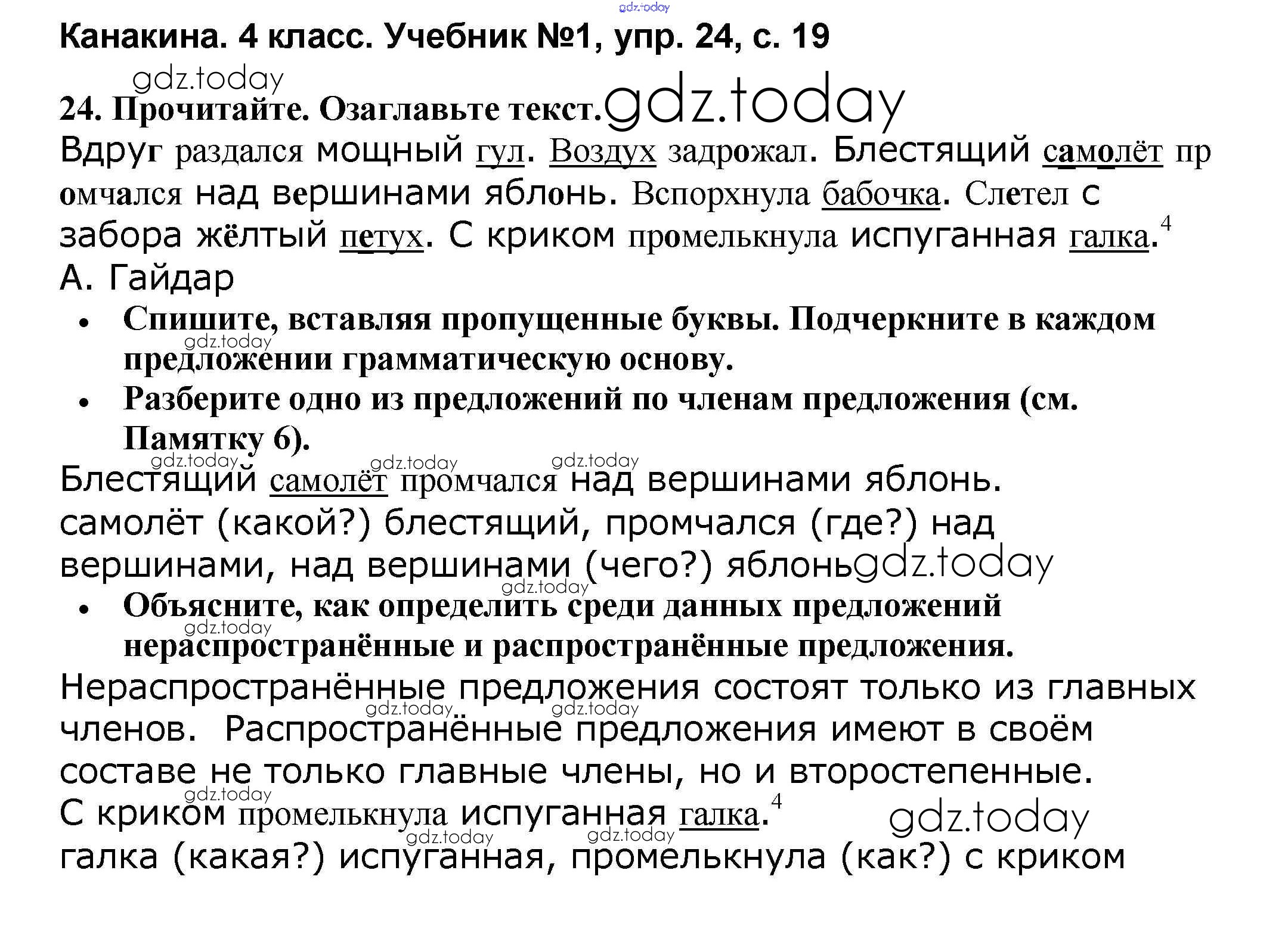 На страницах сайта gdz.today вы найдете учебный и вспомогательный материал, направленный на улучшения знаний школьной программы. ГДЗ - онлайн мир знаний Решение к части 1 24 Учебнику по Русскому языку для 4 класса Канакина, Горецкий Просвещение Школа России 2015