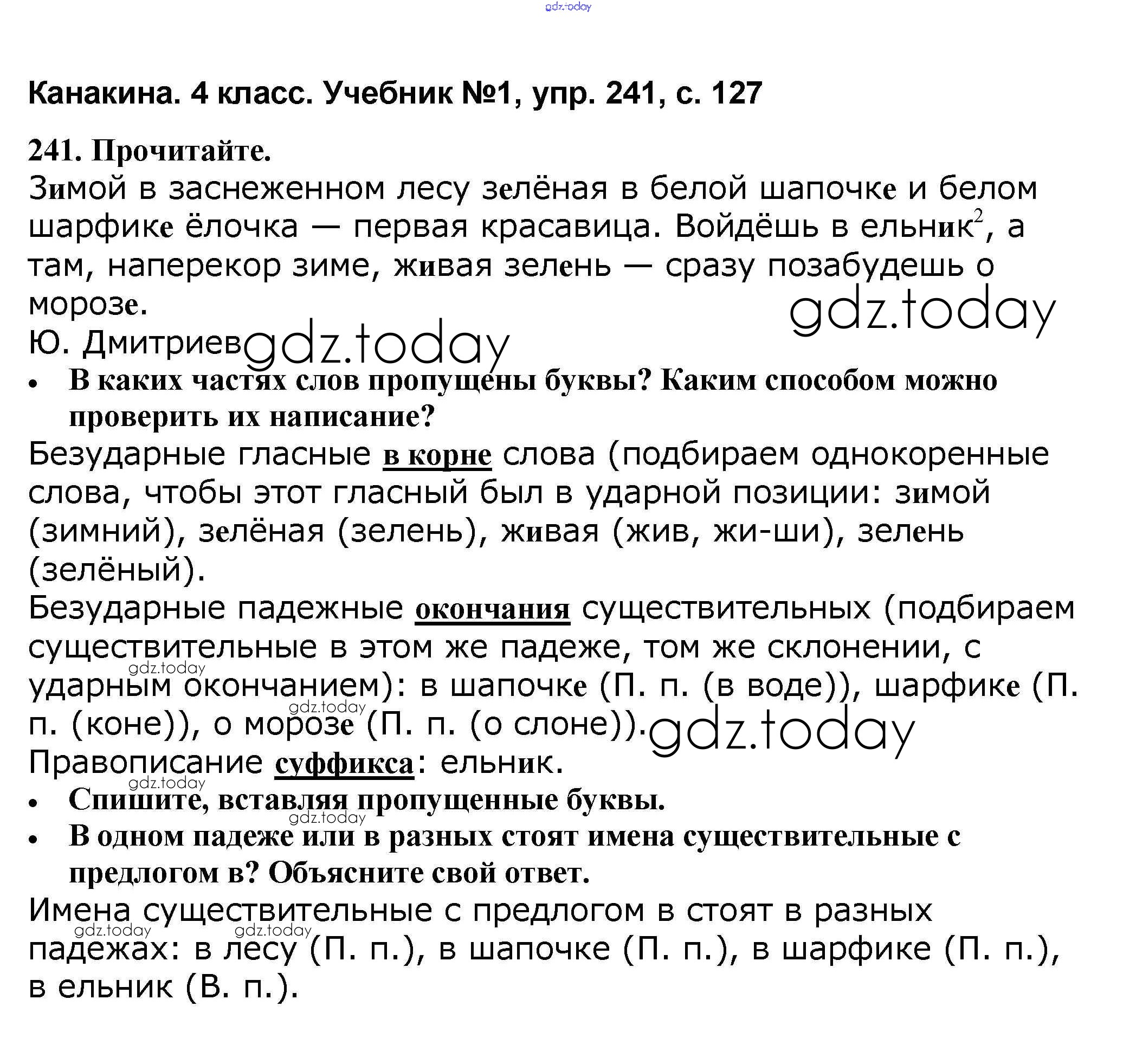 Ответы к Решение к части 1 241 Учебнику по Русскому языку для 4 класса Канакина, Горецкий Просвещение Школа России 2015