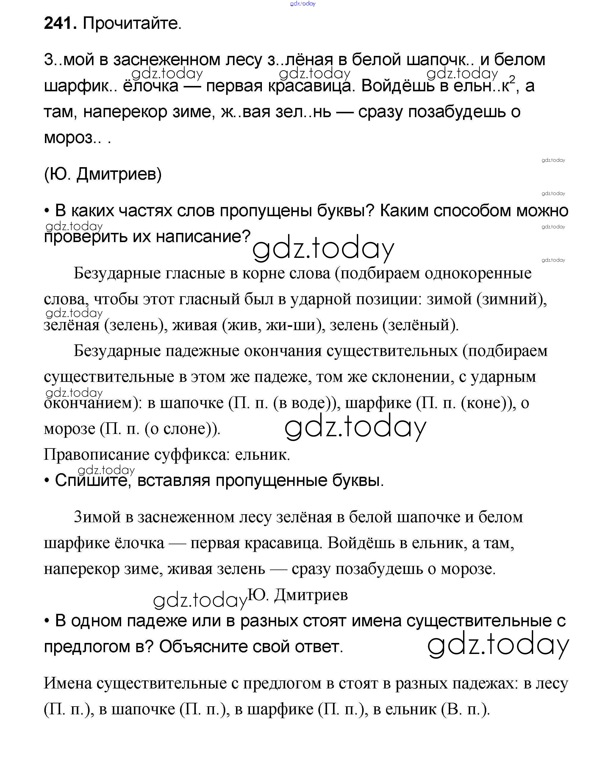 На страницах сайта gdz.today вы найдете учебный и вспомогательный материал, направленный на улучшения знаний школьной программы. ГДЗ - онлайн мир знаний Решение к части 1 241 Учебнику по Русскому языку для 4 класса Канакина, Горецкий Просвещение Школа России 2015