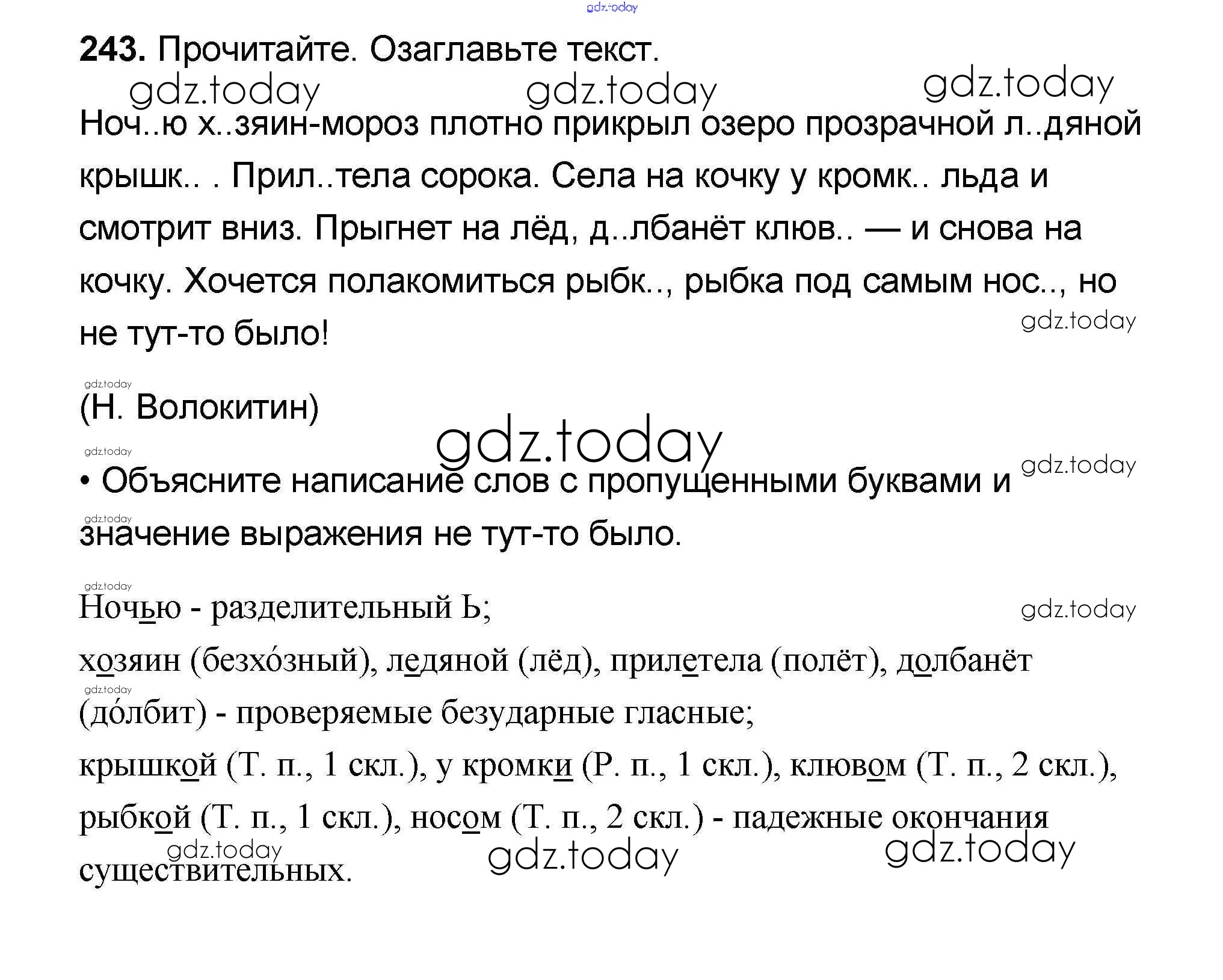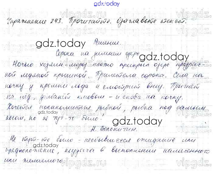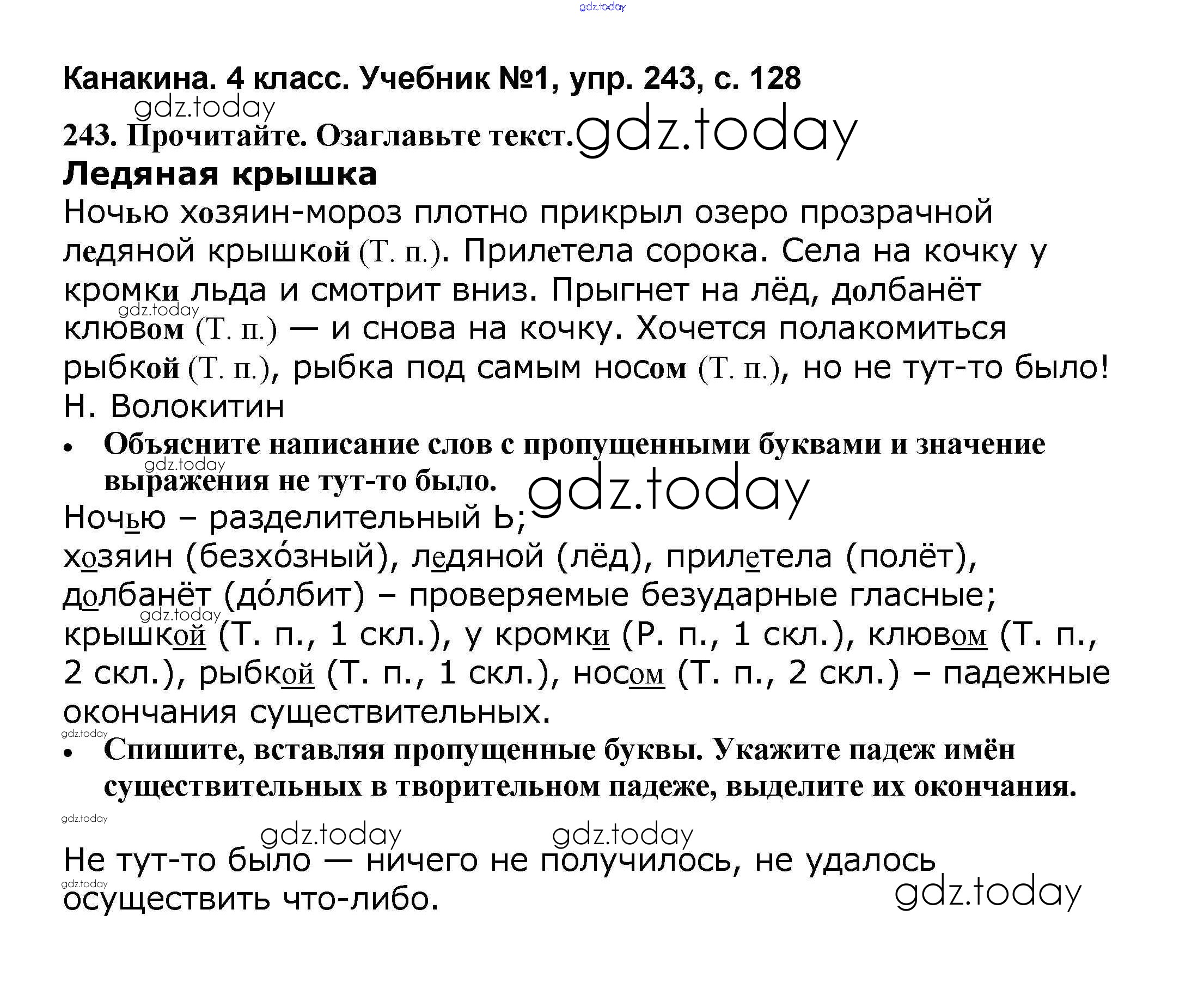 На страницах сайта gdz.today вы найдете учебный и вспомогательный материал, направленный на улучшения знаний школьной программы. ГДЗ - онлайн мир знаний Решение к части 1 243 Учебнику по Русскому языку для 4 класса Канакина, Горецкий Просвещение Школа России 2015