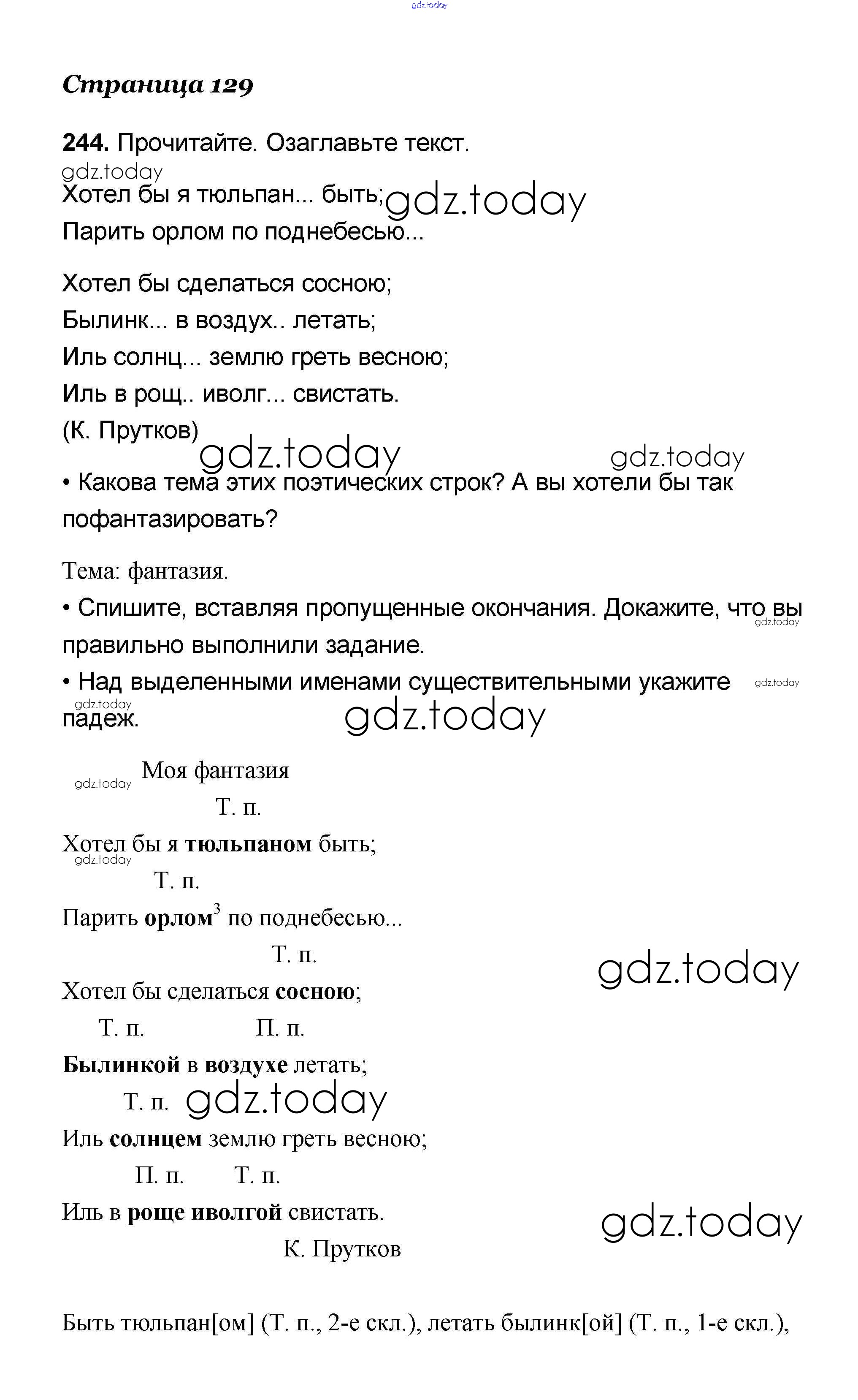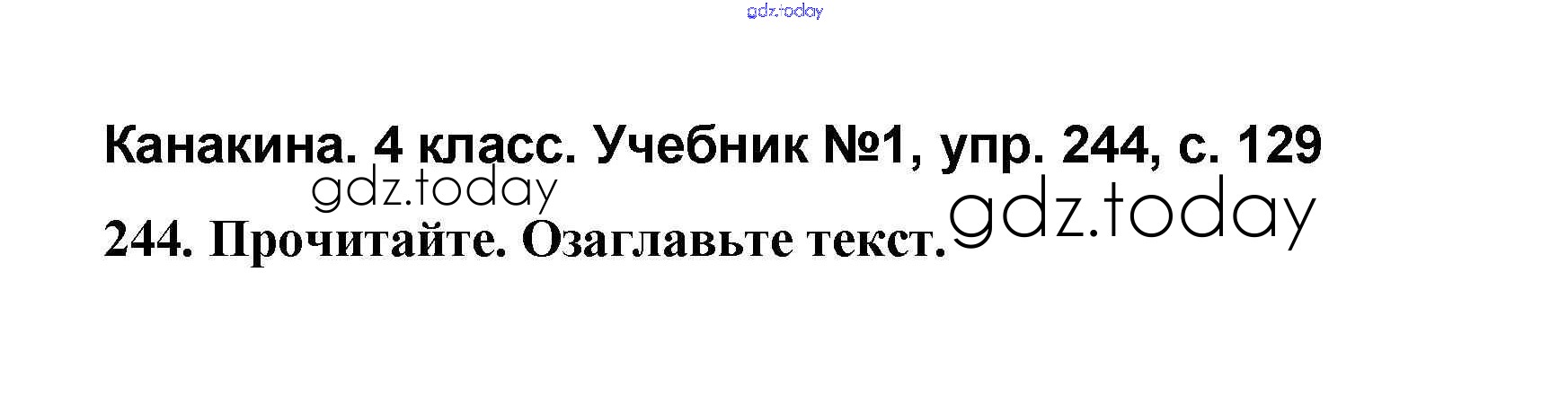 На страницах сайта gdz.today вы найдете учебный и вспомогательный материал, направленный на улучшения знаний школьной программы. ГДЗ - онлайн мир знаний Решение к части 1 244 Учебнику по Русскому языку для 4 класса Канакина, Горецкий Просвещение Школа России 2015