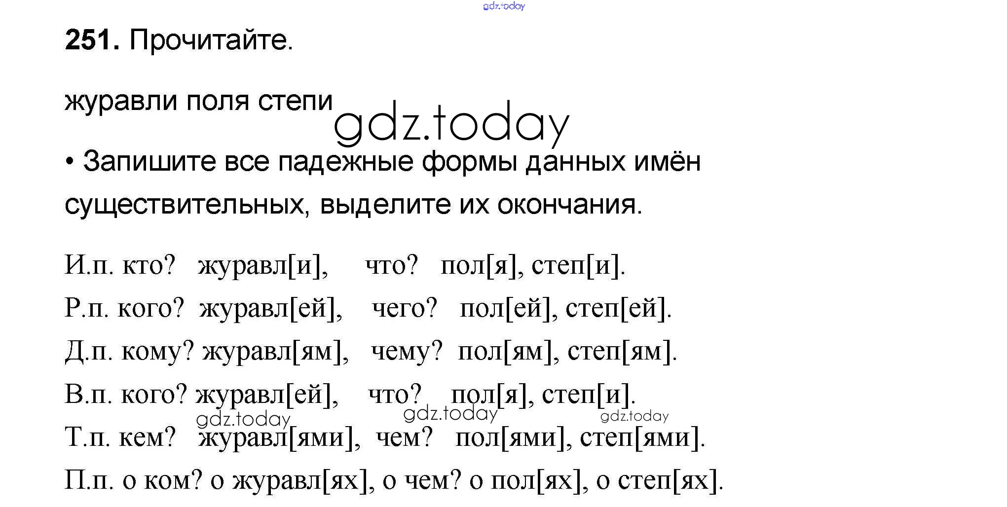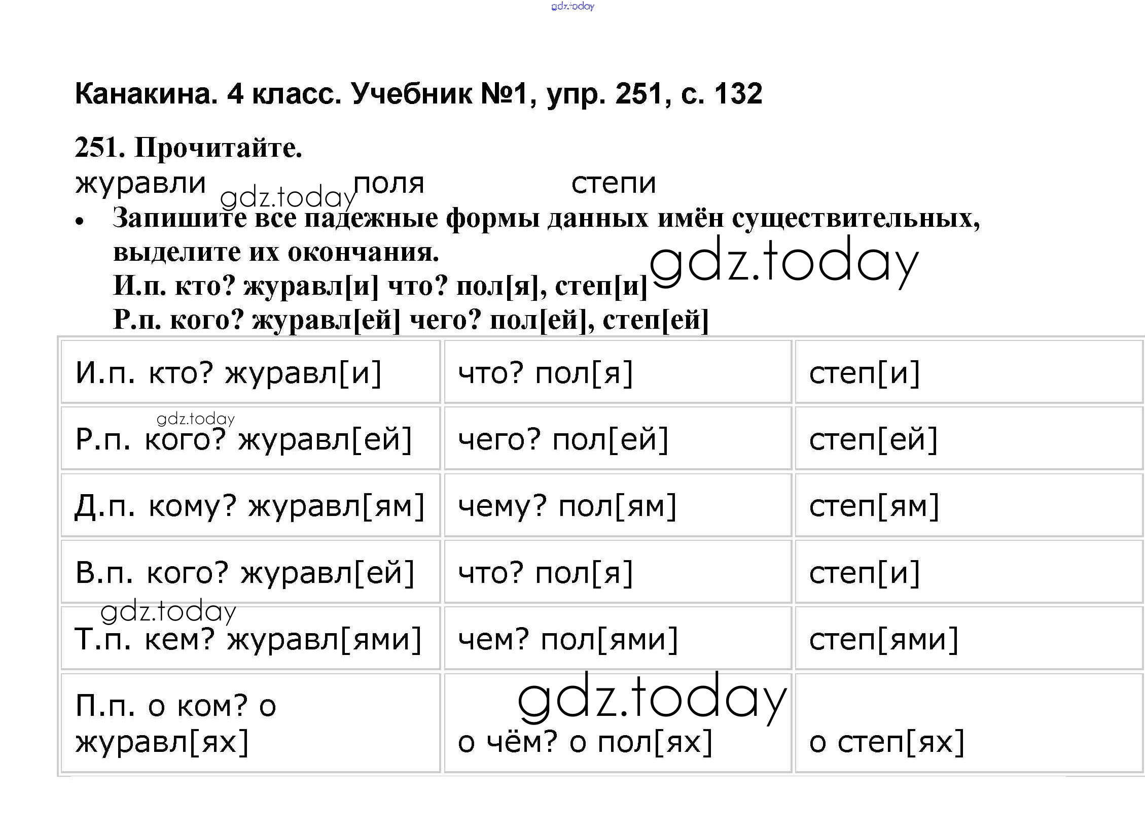 На страницах сайта gdz.today вы найдете учебный и вспомогательный материал, направленный на улучшения знаний школьной программы. ГДЗ - онлайн мир знаний Решение к части 1 251 Учебнику по Русскому языку для 4 класса Канакина, Горецкий Просвещение Школа России 2015