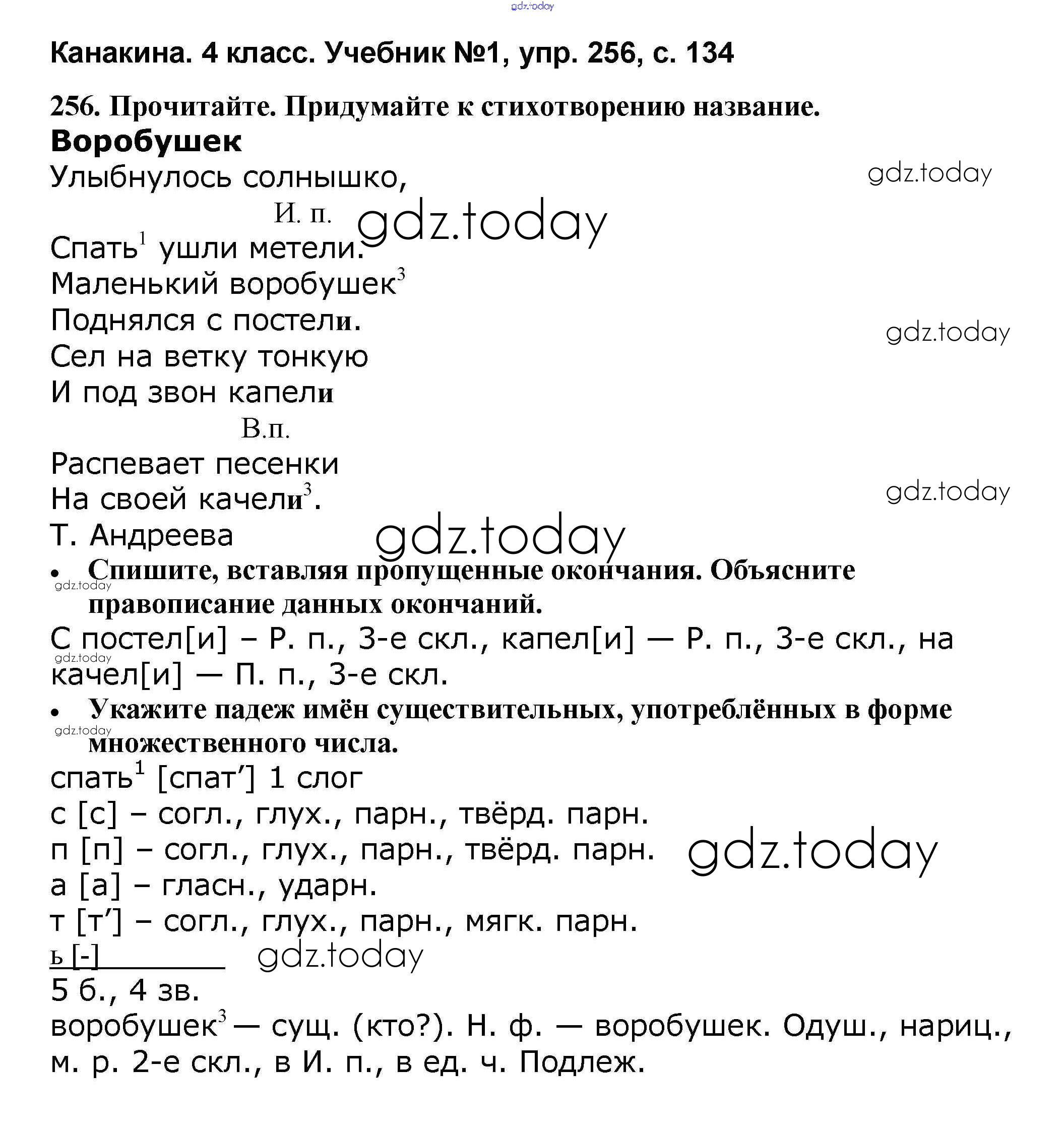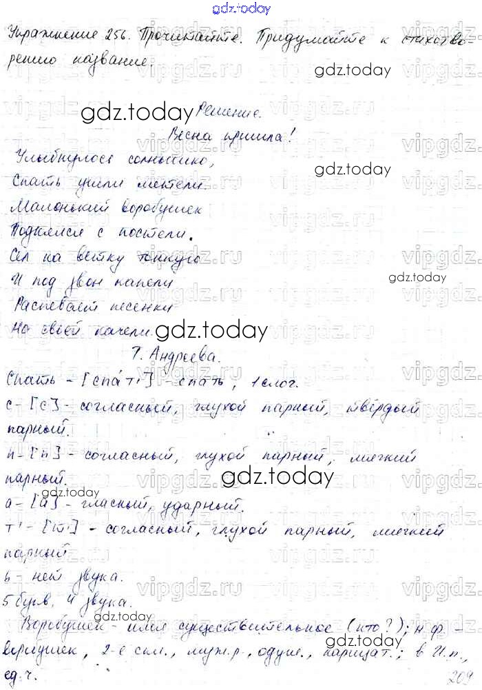 На страницах сайта gdz.today вы найдете учебный и вспомогательный материал, направленный на улучшения знаний школьной программы. ГДЗ - онлайн мир знаний Решение к части 1 256 Учебнику по Русскому языку для 4 класса Канакина, Горецкий Просвещение Школа России 2015